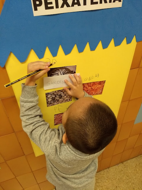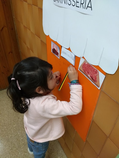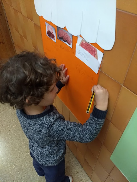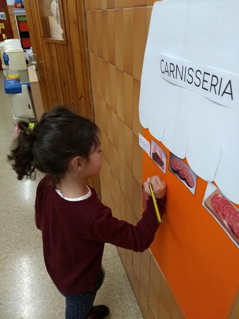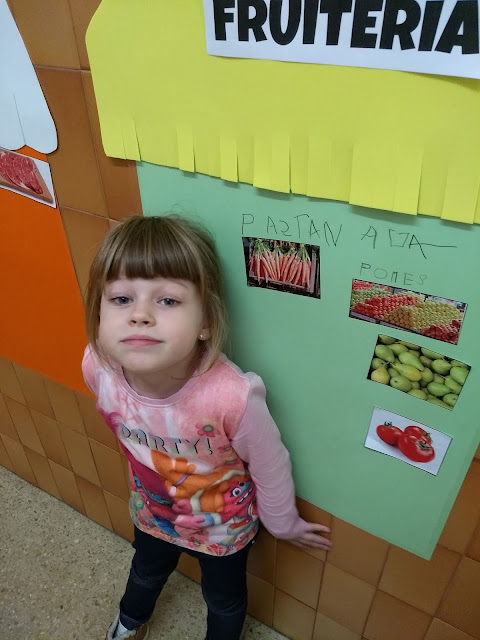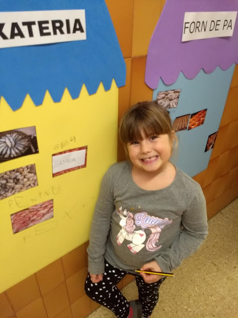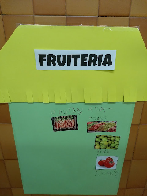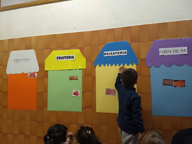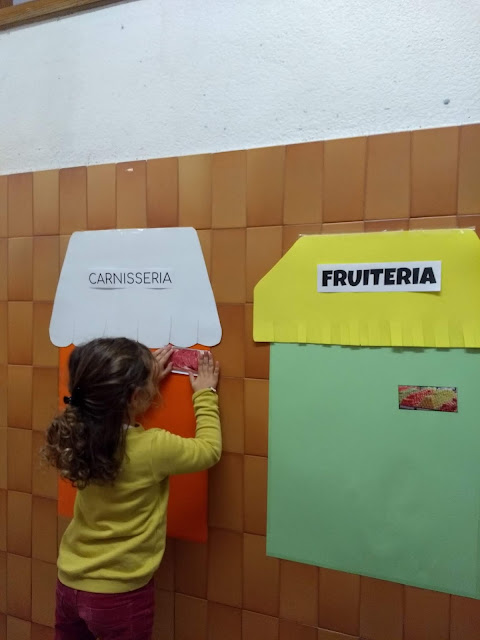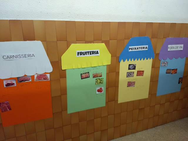 Una de les activitats que hem estat fent dins de la Unitat Didàctica del Mercat, hem fet el nostre propi Mercat Vedruna al passadís de la nostra escola. Hem preparat quatre parades ( forn de pa; fruiteria; peixateria i carnisseria ) i les hem omplert de coses.