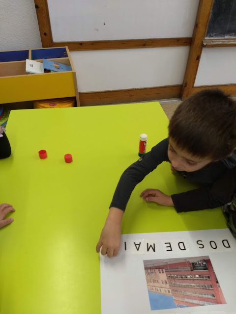Es tractava de confegir entre tots dues paraules: ESCOLA i el nom del carrer en el qual es troba la nostra escola: DOS DE MAIG