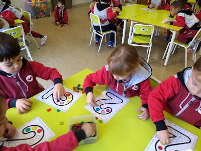 A la classe de les Girafes seguim treballant el número 2, i ho fem amb diferents activitats per treballar els diferents aspectes: traç, quantitat,…