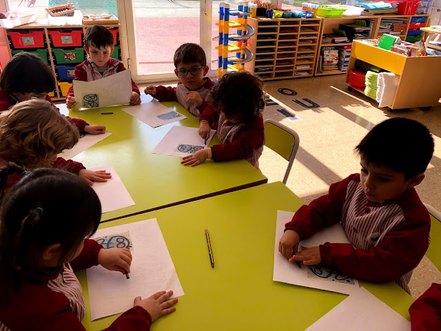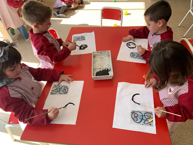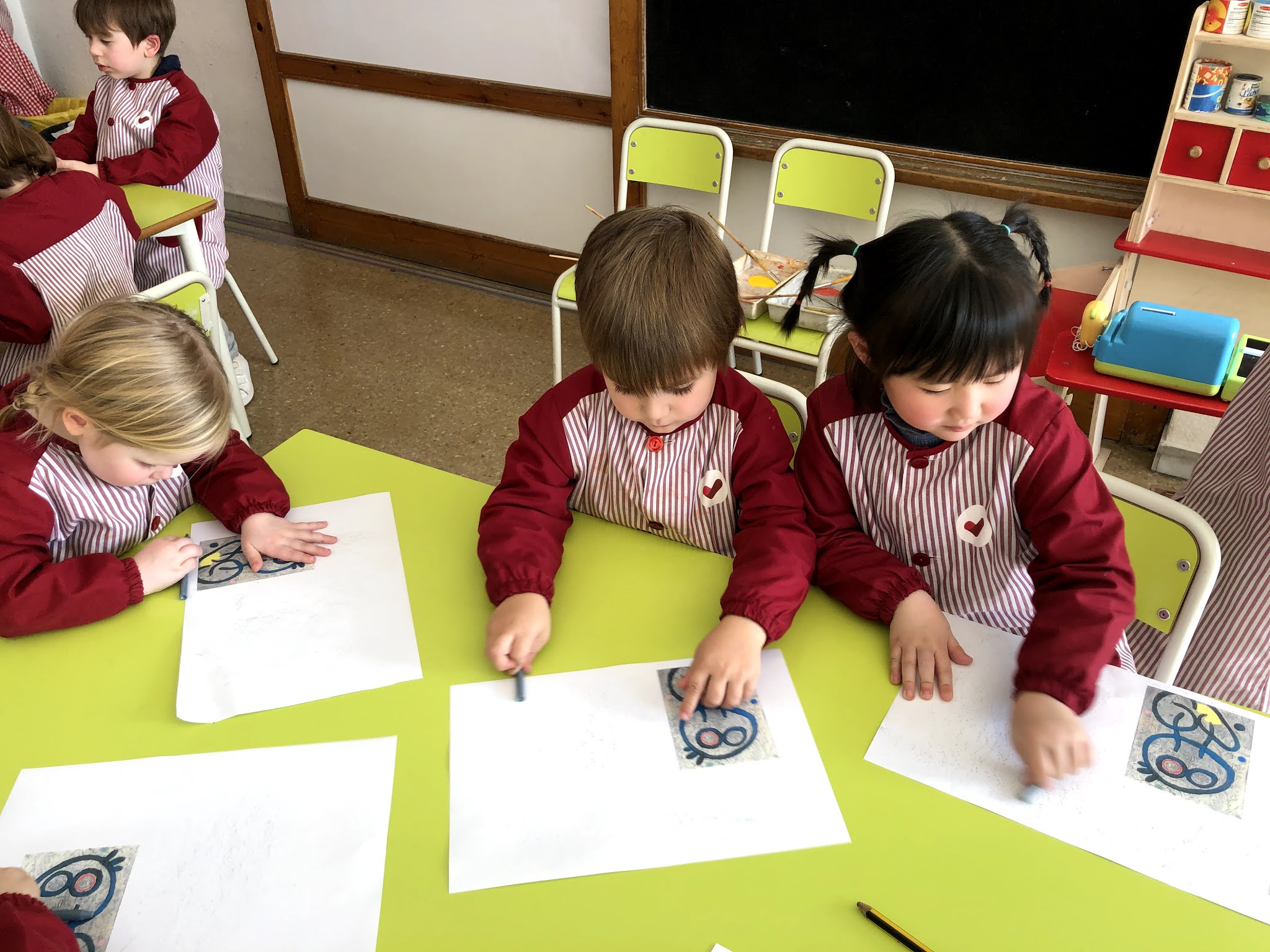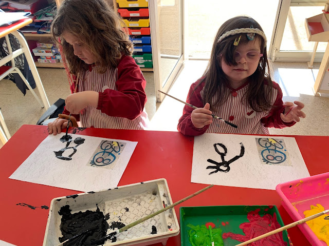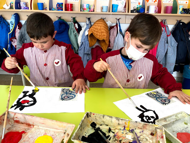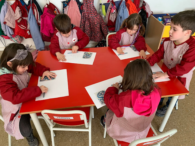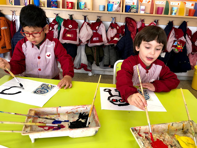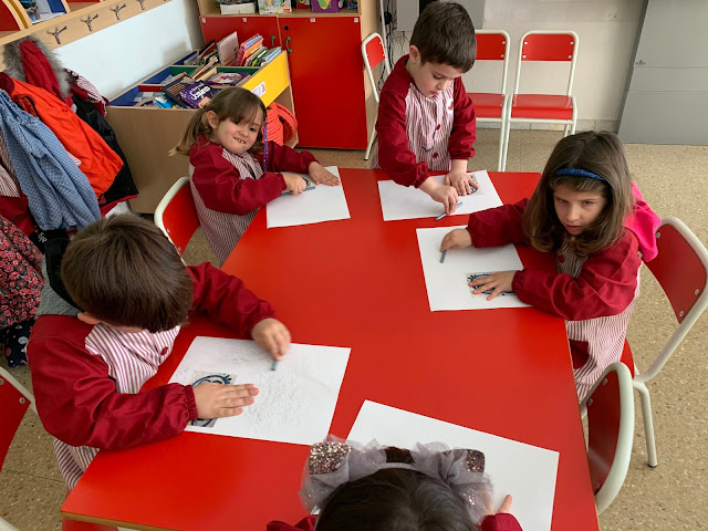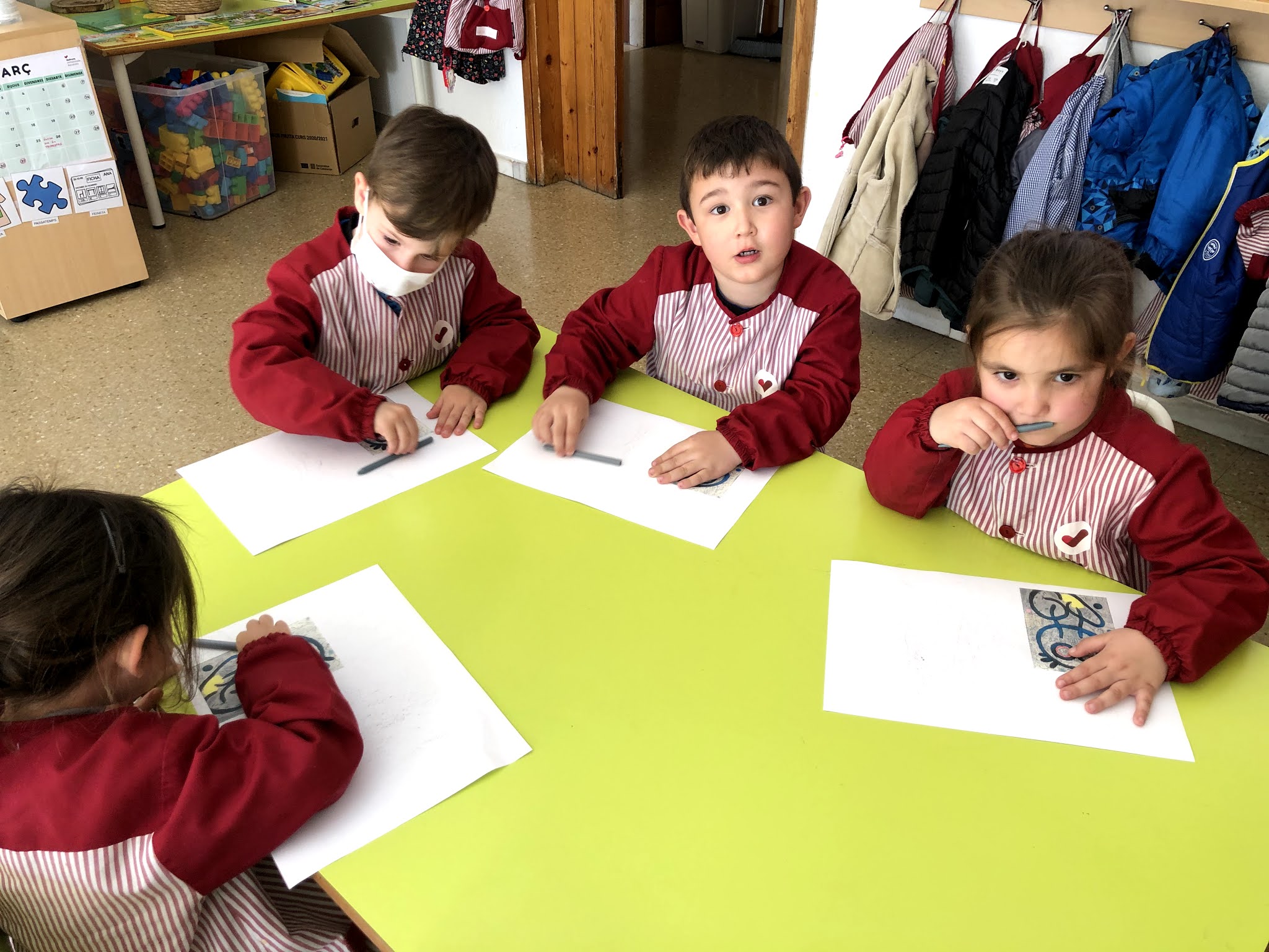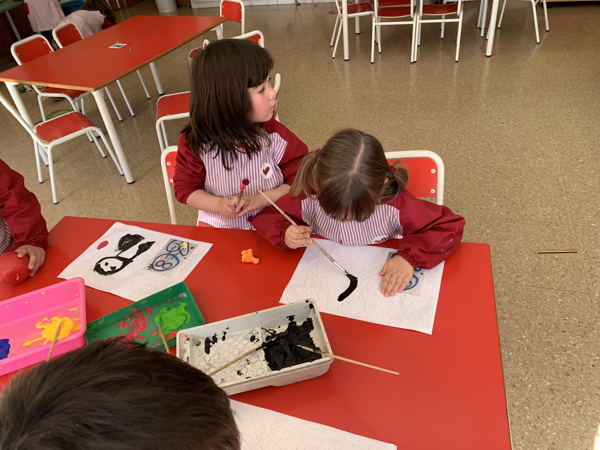 Ens fixem en l’obra de Joan Miró anomenada “Autoretrat” per fer el nostre propi dibuix. Primer hem pintat un fons gris amb plastidecor i després hem fet el cos amb pintura.