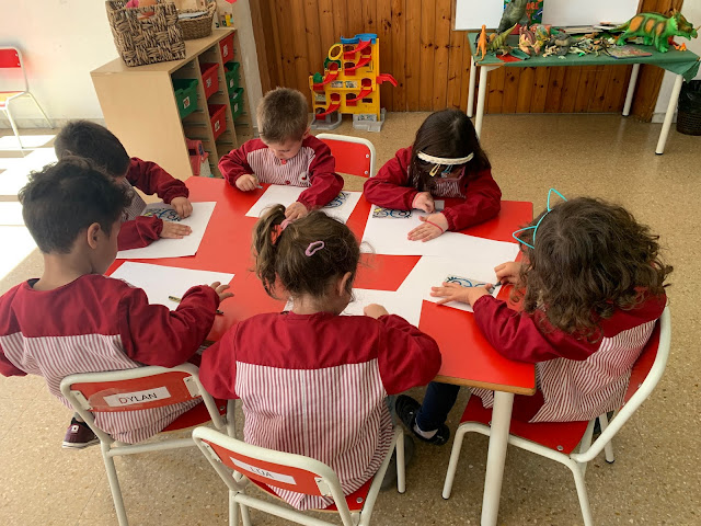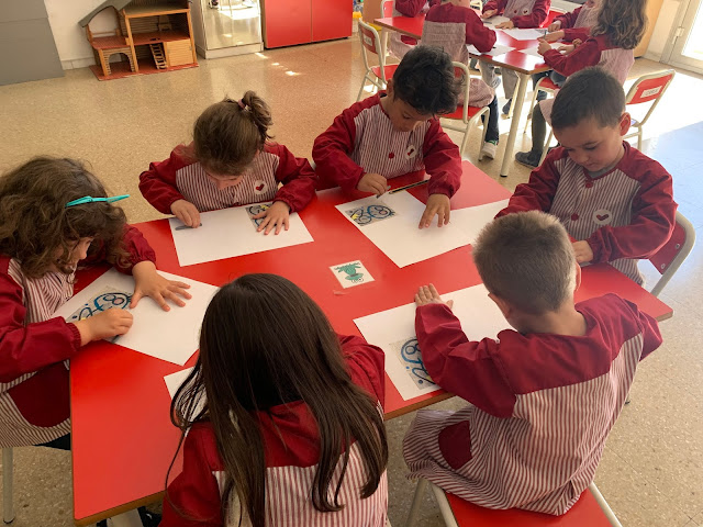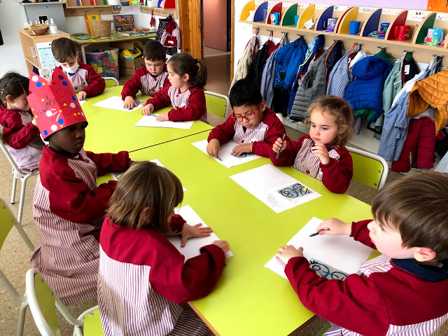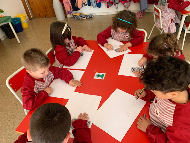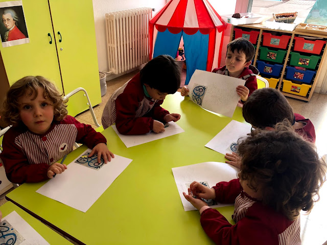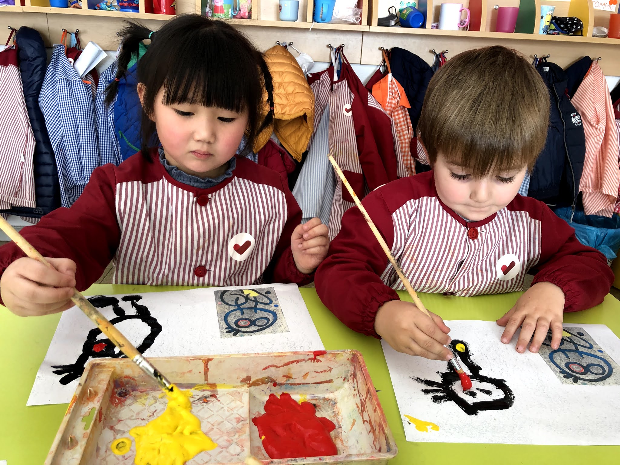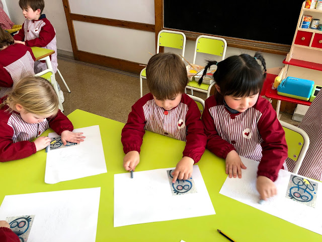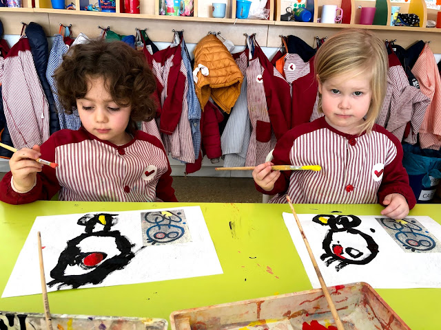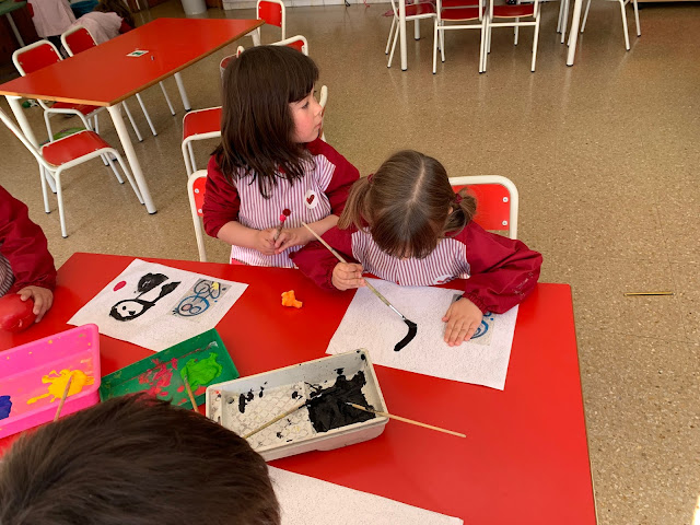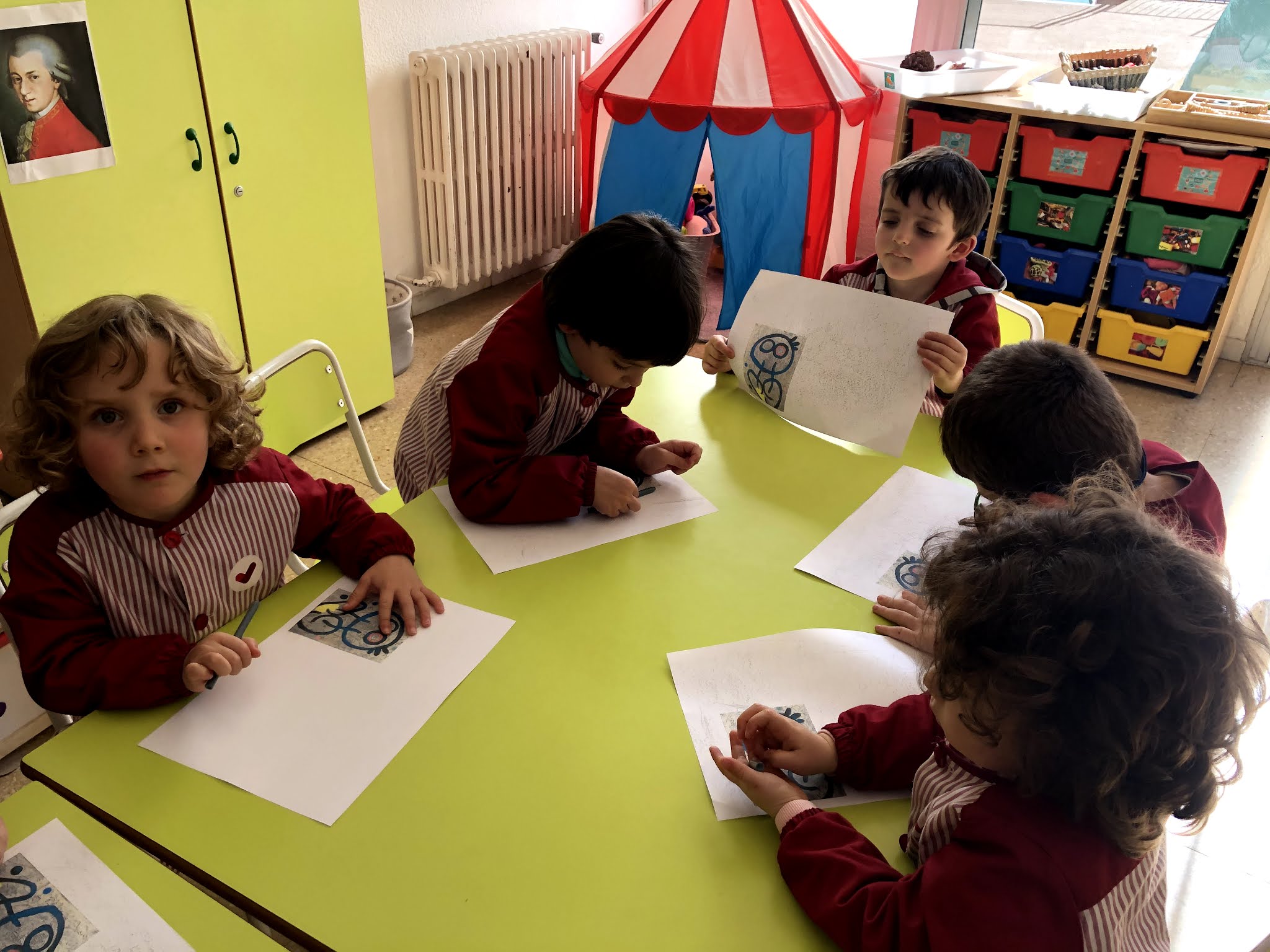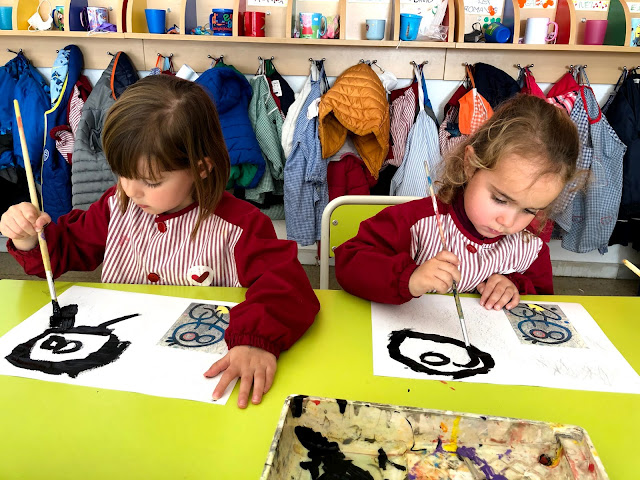 Ens fixem en l’obra de Joan Miró anomenada “Autoretrat” per fer el nostre propi dibuix. Primer hem pintat un fons gris amb plastidecor i després hem fet el cos amb pintura.