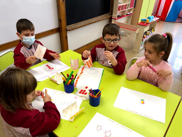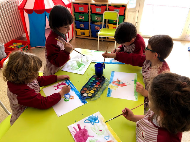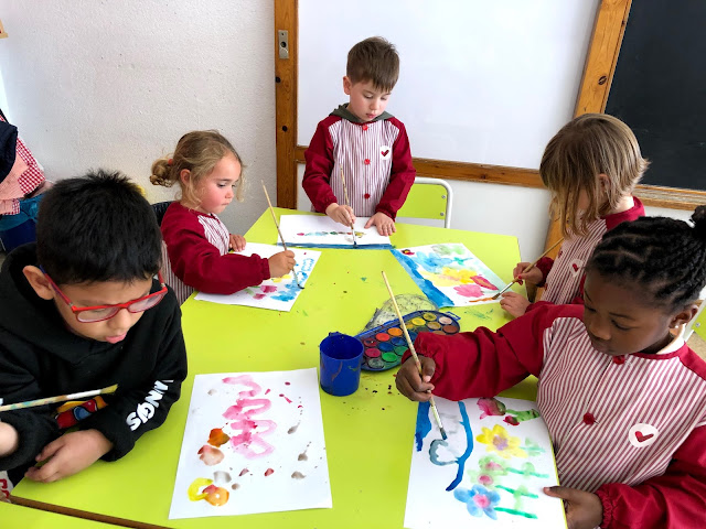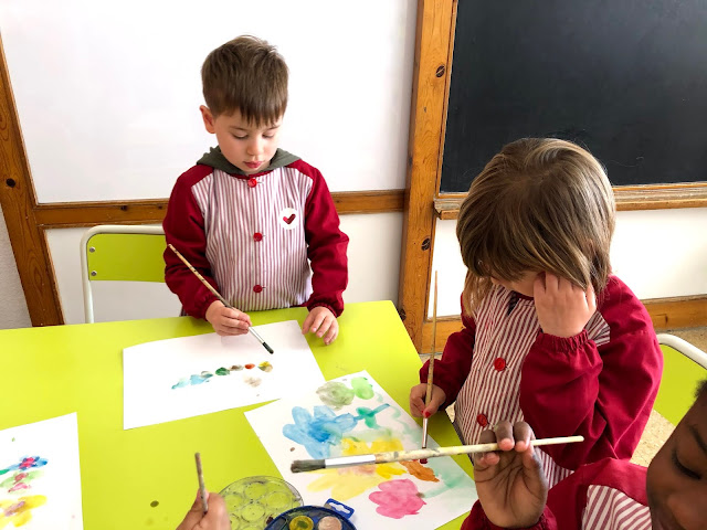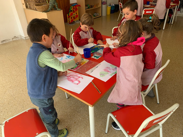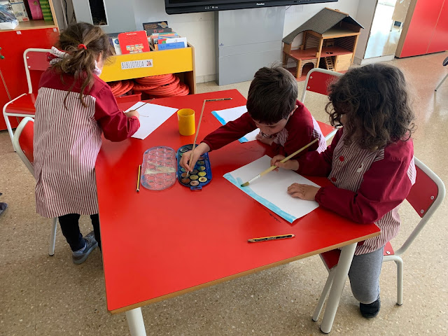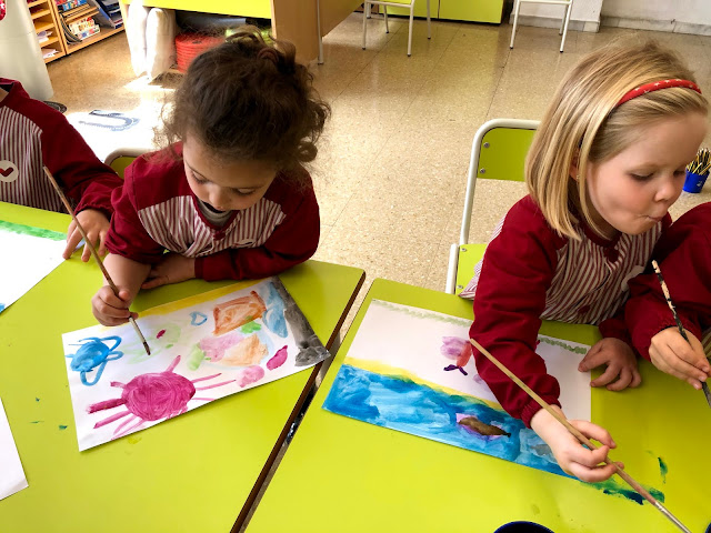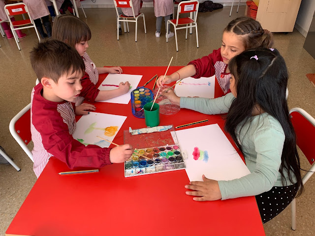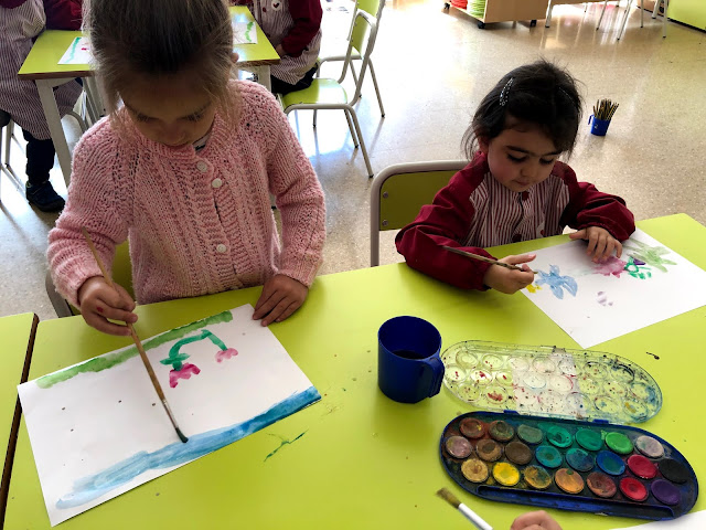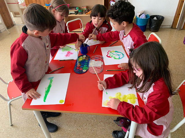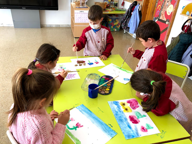 Hem llegit el conte “La Primavera ja és aquí”. Hem escoltat i vist cançons de primavera. Moltes de les propostes matinals estan relacionades amb la primavera! I aquesta tarda….hem pintat un paisatge de primavera amb aquarel·les! Mireu quins colors més bonics!