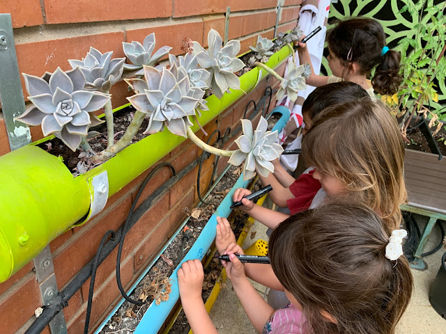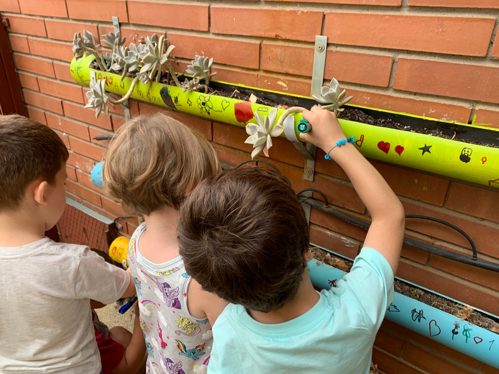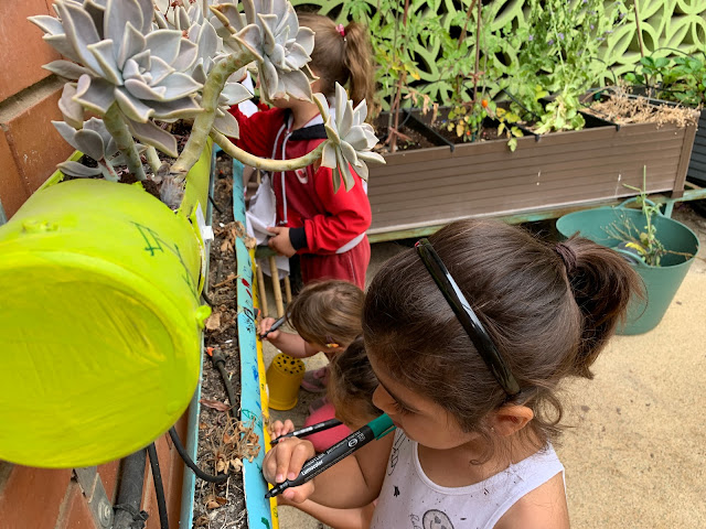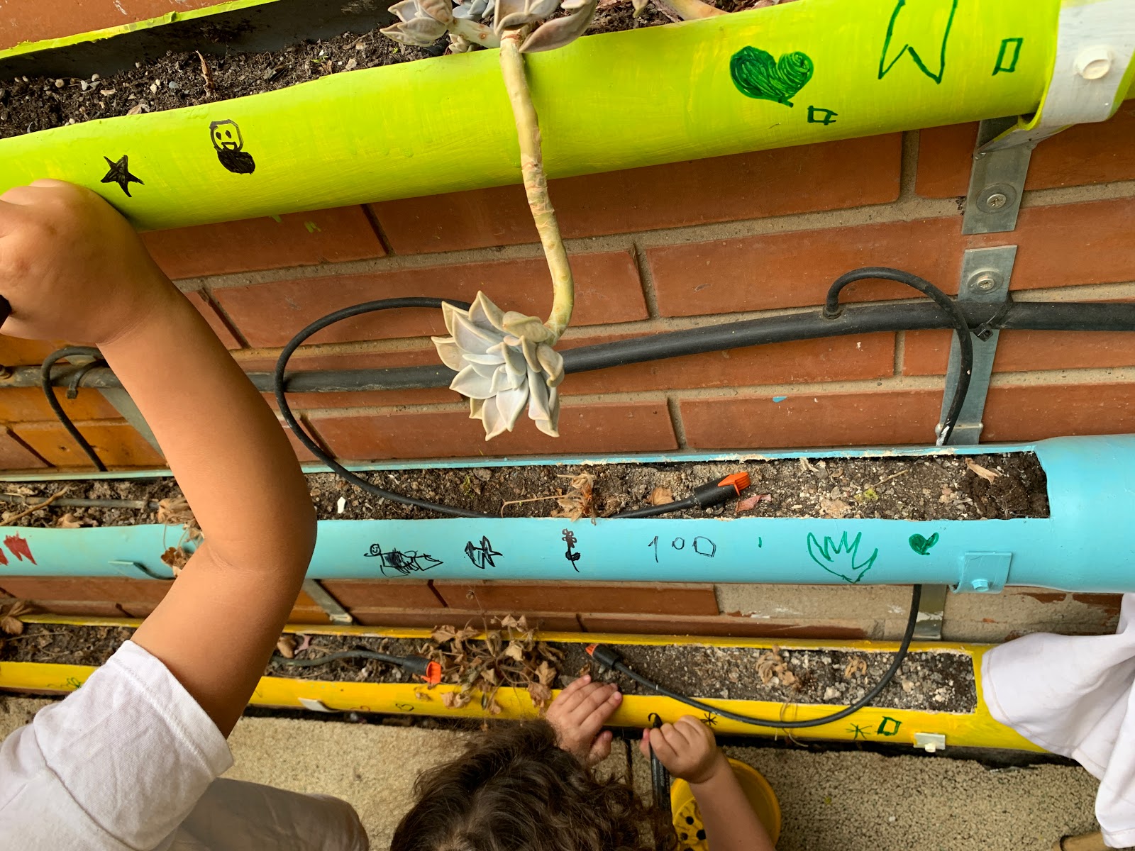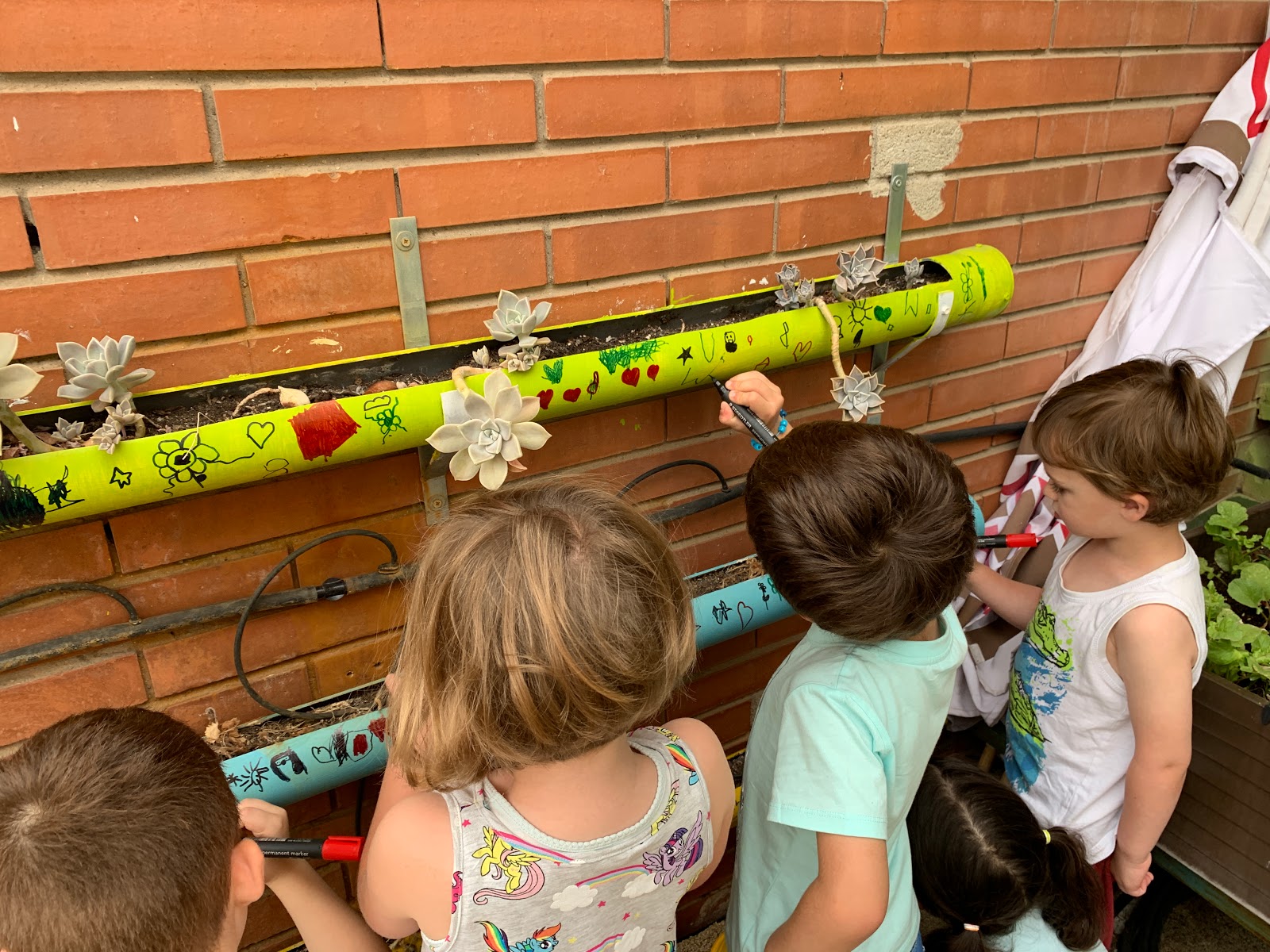 Aquest matí unes quantes nenes i nens de la classe dels Unicorns i dels Coets hem decorat el nostre hort per tal de fer-lo més bonic, més agradable i que cada dia sigui més nostre. Hem dibuixat amb uns retoladors que no poden esborrar-se! Voleu veure el procés de creació?