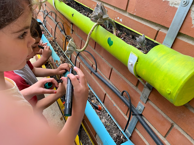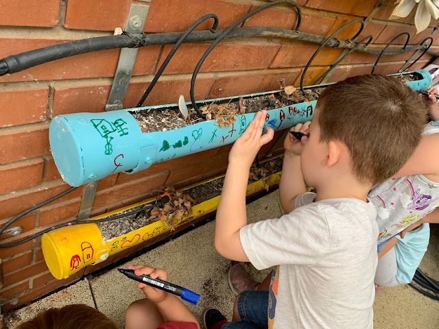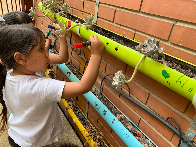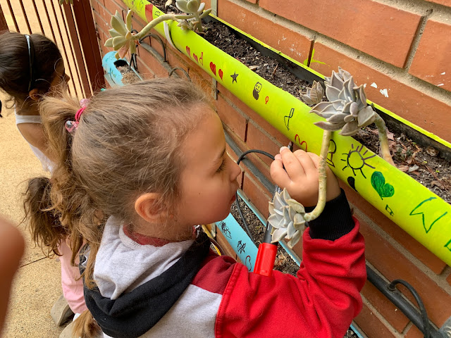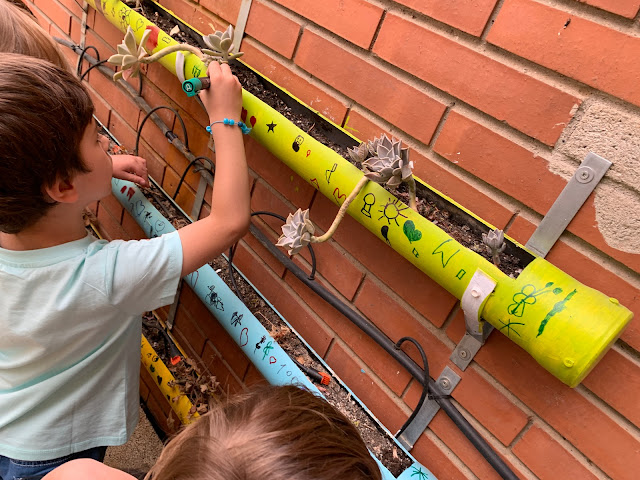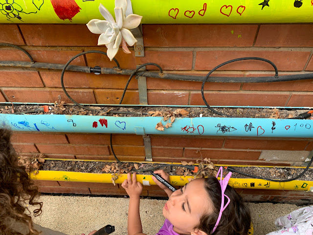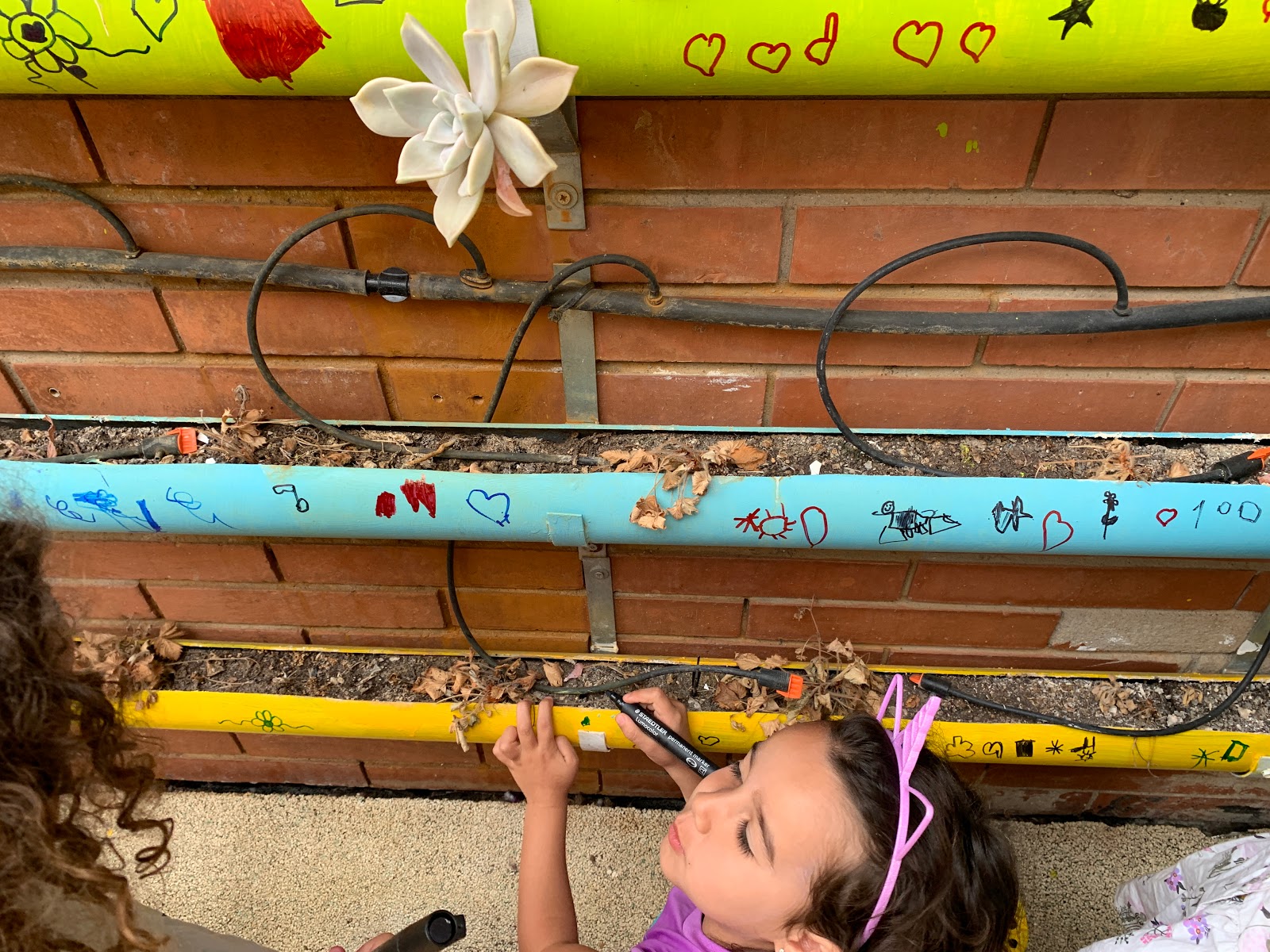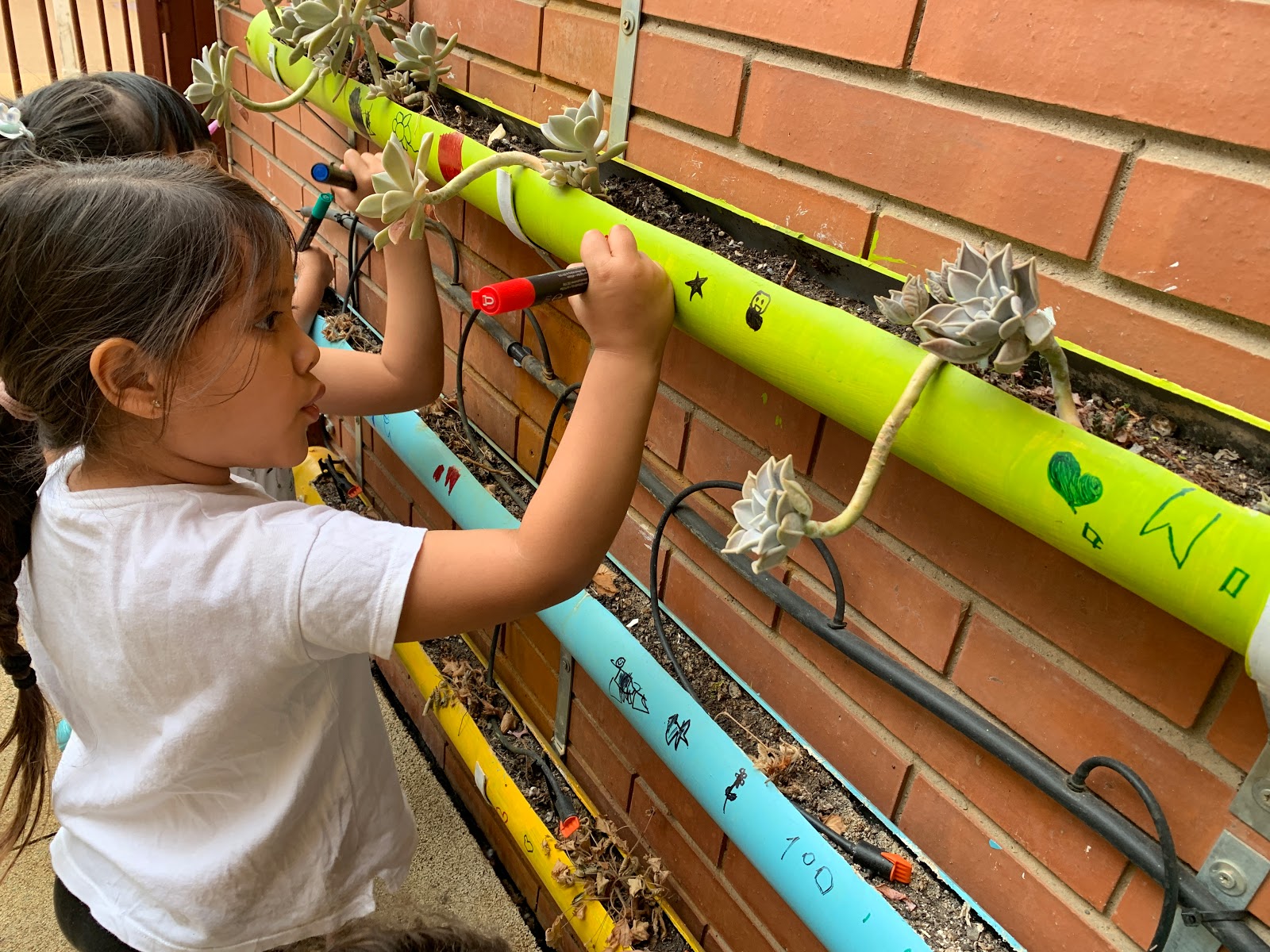Aquest matí unes quantes nenes i nens de la classe dels Unicorns i dels Coets hem decorat el nostre hort per tal de fer-lo més bonic, més agradable i que cada dia sigui més nostre. Hem dibuixat amb uns retoladors que no poden esborrar-se! Voleu veure el procés de creació?