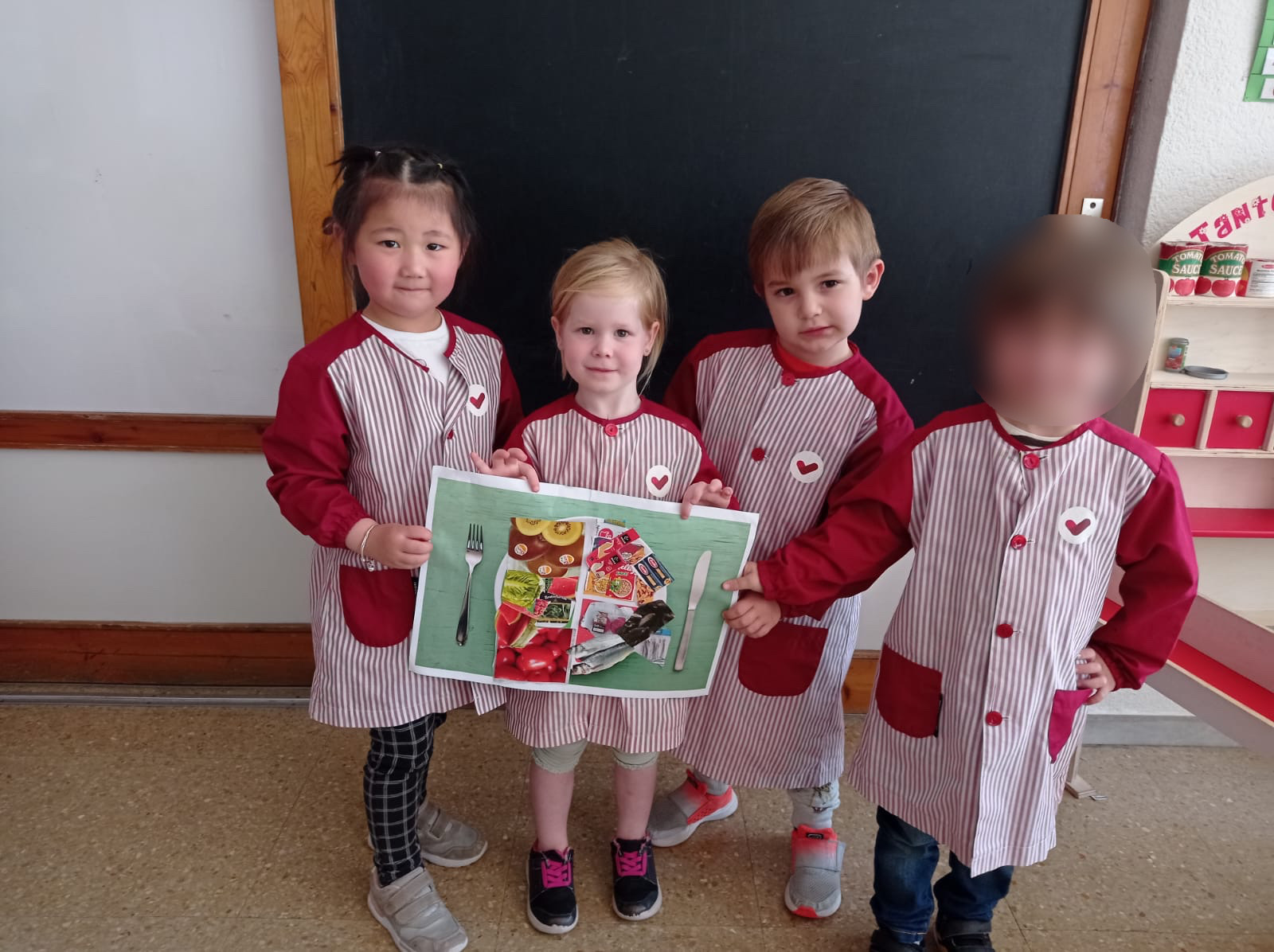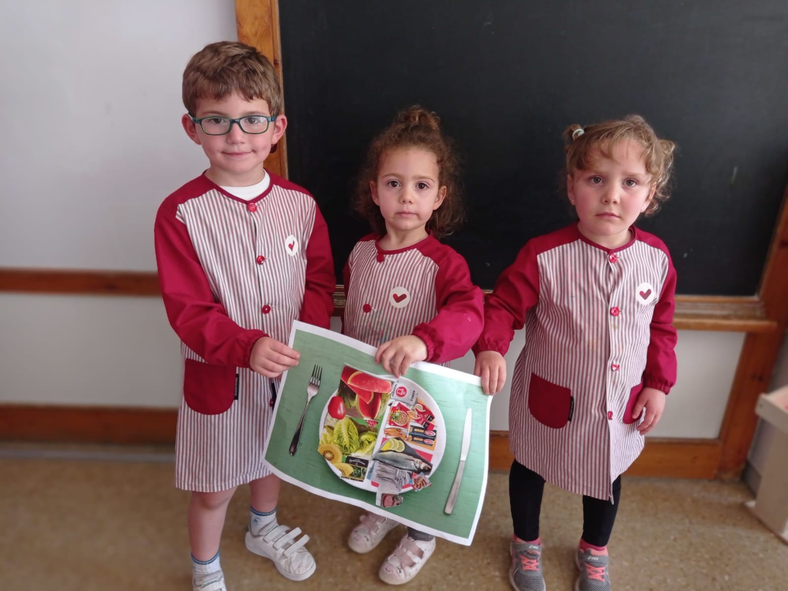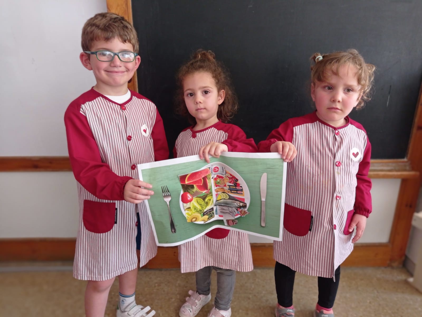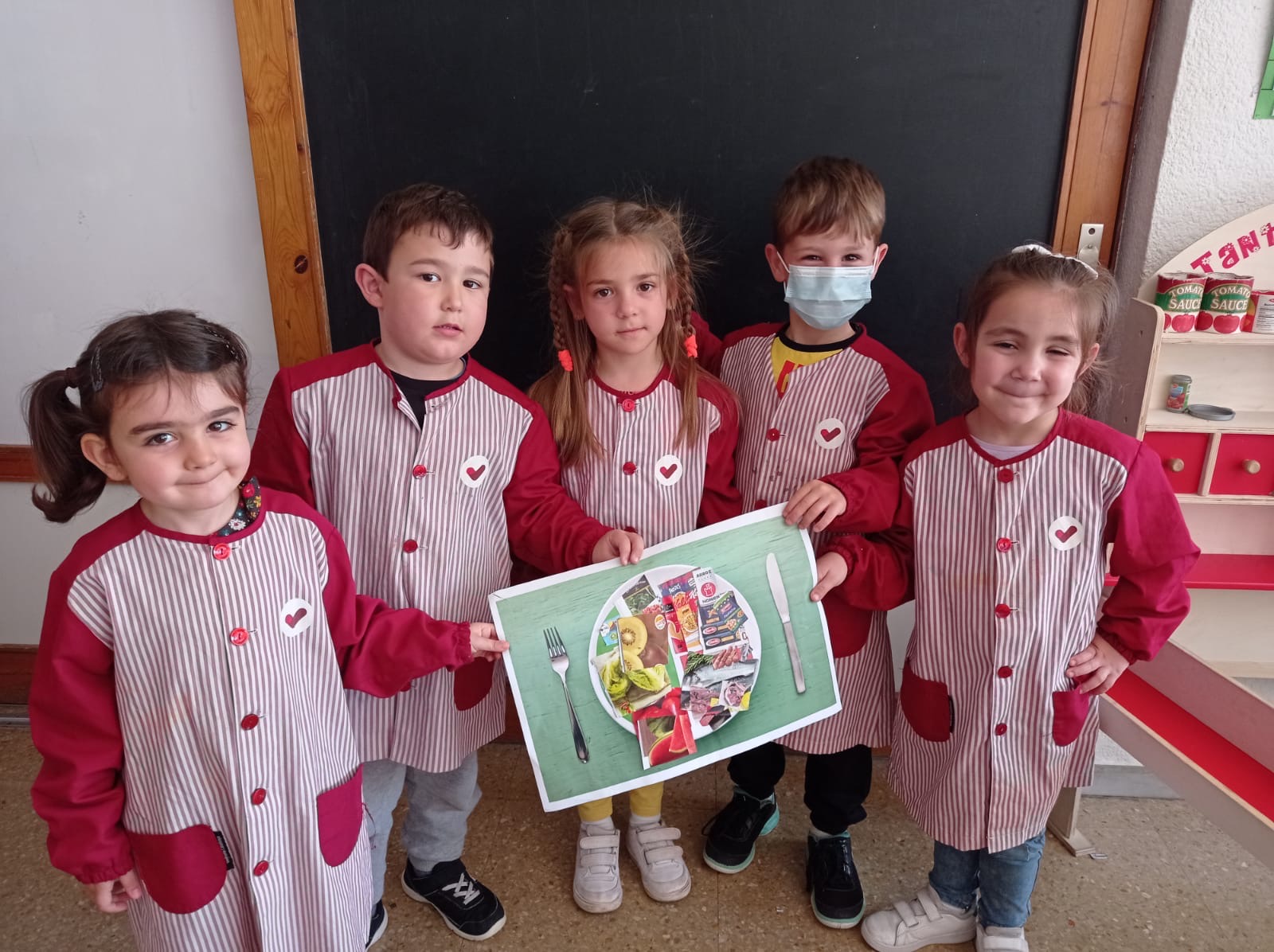 Amb els infants de P4 hem treballat el plat saludable. El coneixeu? Es tracta de com hauria de ser cada àpat. Mig plat de fruita i verdura, un quart de proteïna i un quart d’hidrats.