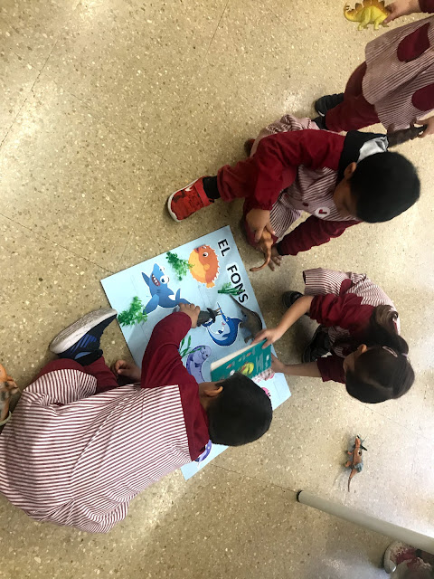 Avui hem jugat amb les coses que han portat del projecte i les hem repassat. Hem mirat contes i llibres, murals i jugat amb les joguines. D’aquesta manera, poc a poc anem triant els temes que més ens agraden.