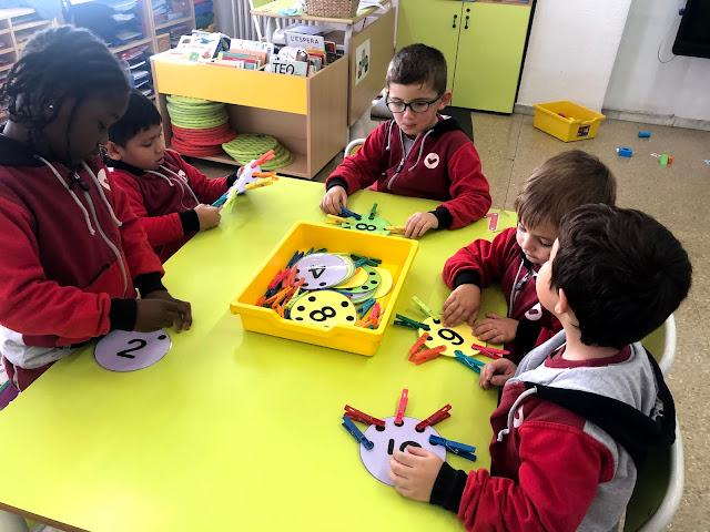 La setmana passada ens vam dividir en petits grups per treballar diferents conceptes matemàtics, seguint la metodologia de Racons. Manipulant i jugant vam treballar les quantitats, els números i la direccionalitat d’aquests. Mireu que bé que ho fan!