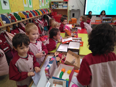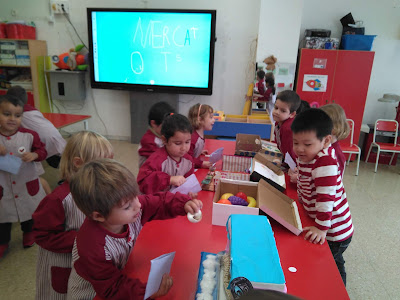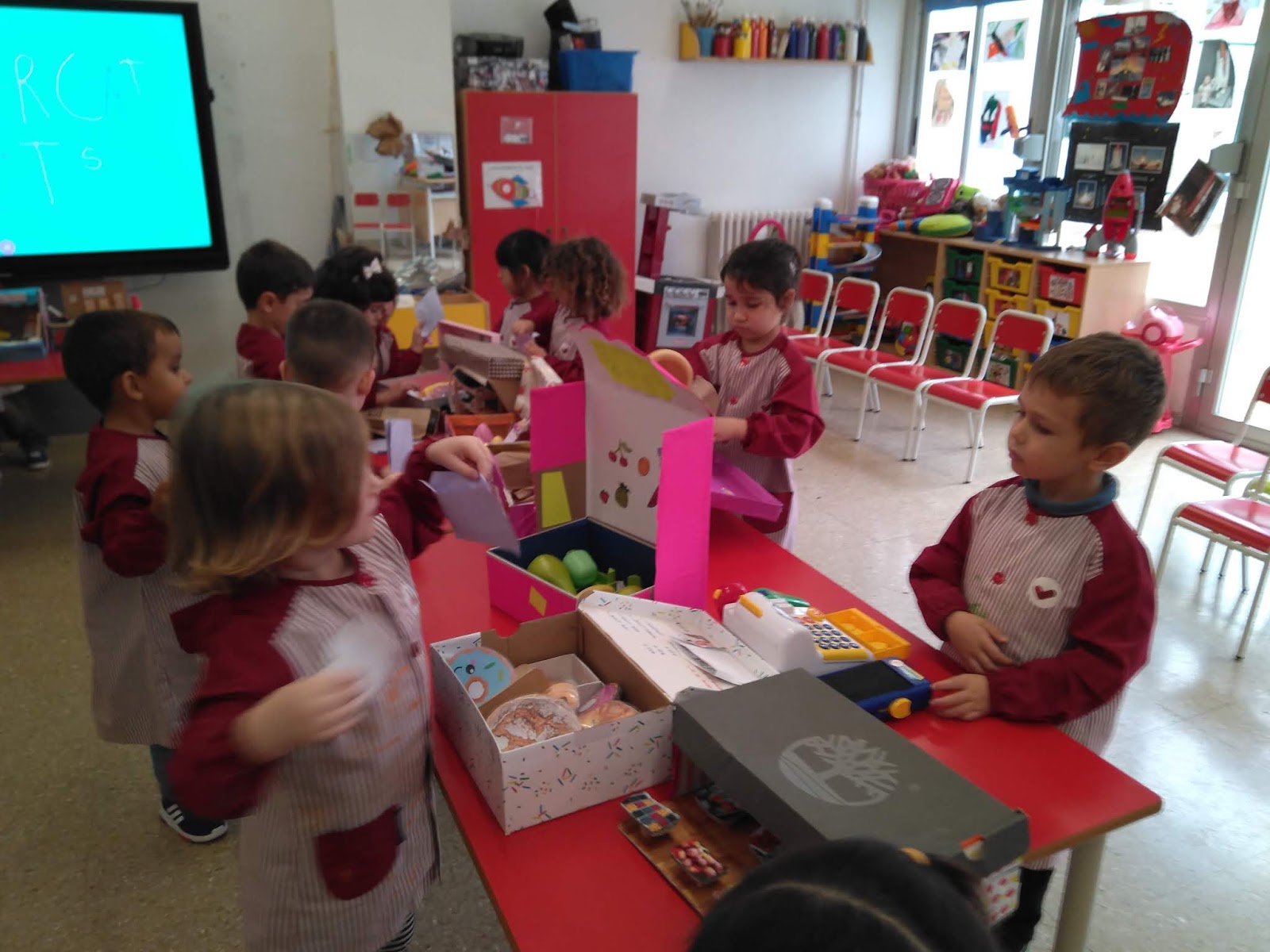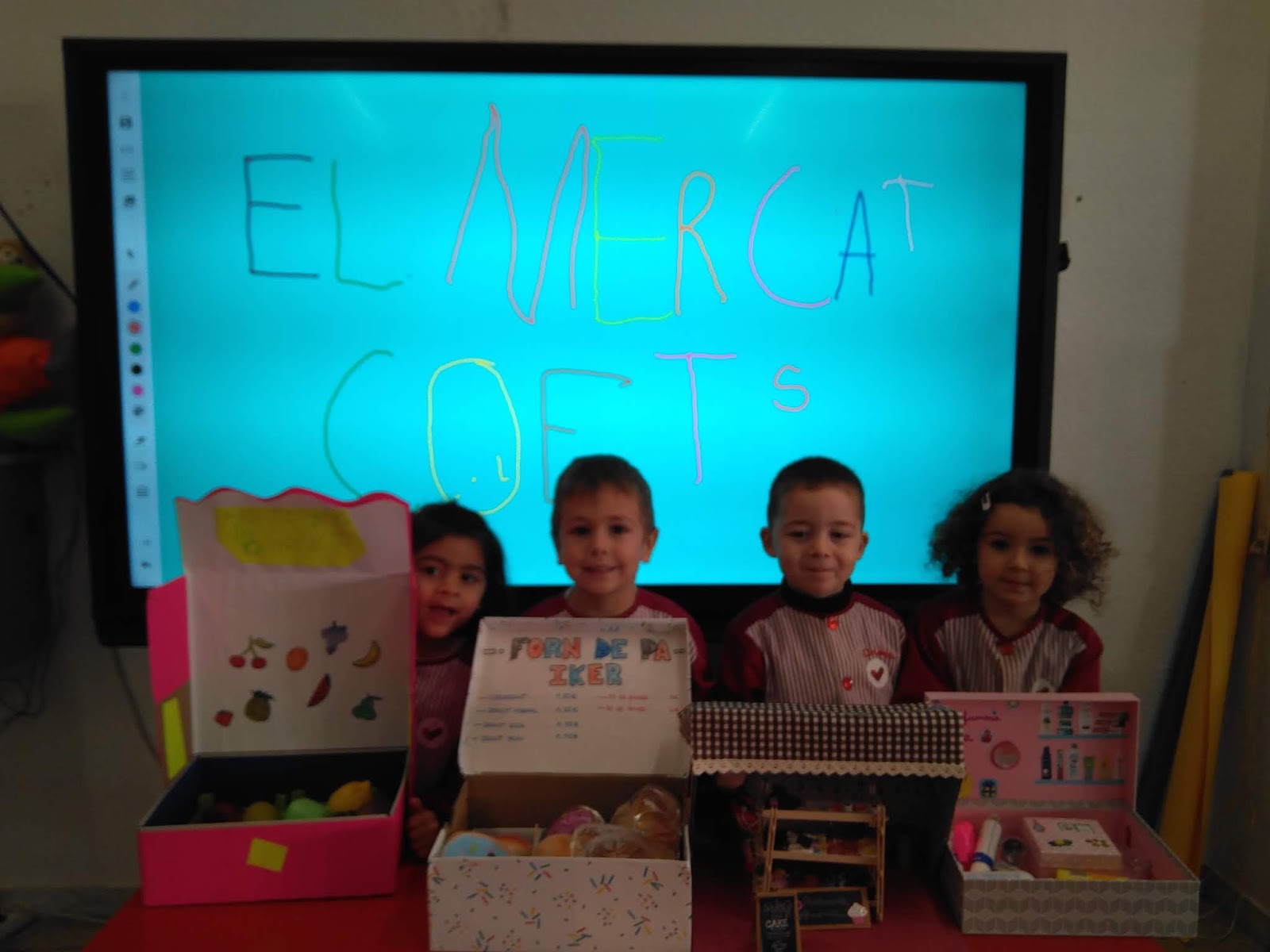 Com ja sabeu, aquestes setmanes estem treballant el “MERCAT”. Per poder experimentar de manera vivencial en què consisteix un mercat, hem creat el nostre propi dins l’aula. Cada nen i nena, amb l’ajuda de la seva família, va haver de preparar una paradeta… imaginació al poder!