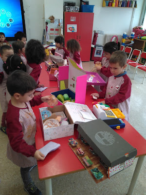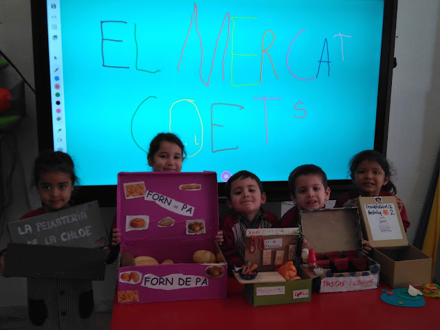 A continuació, amb les parades tan boniques que van fer, els Coets vam muntar un mercat a la classe per poder comprar i vendre diferents productes.