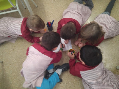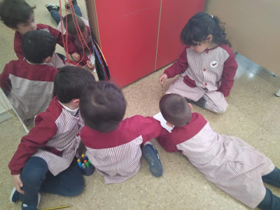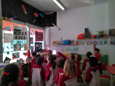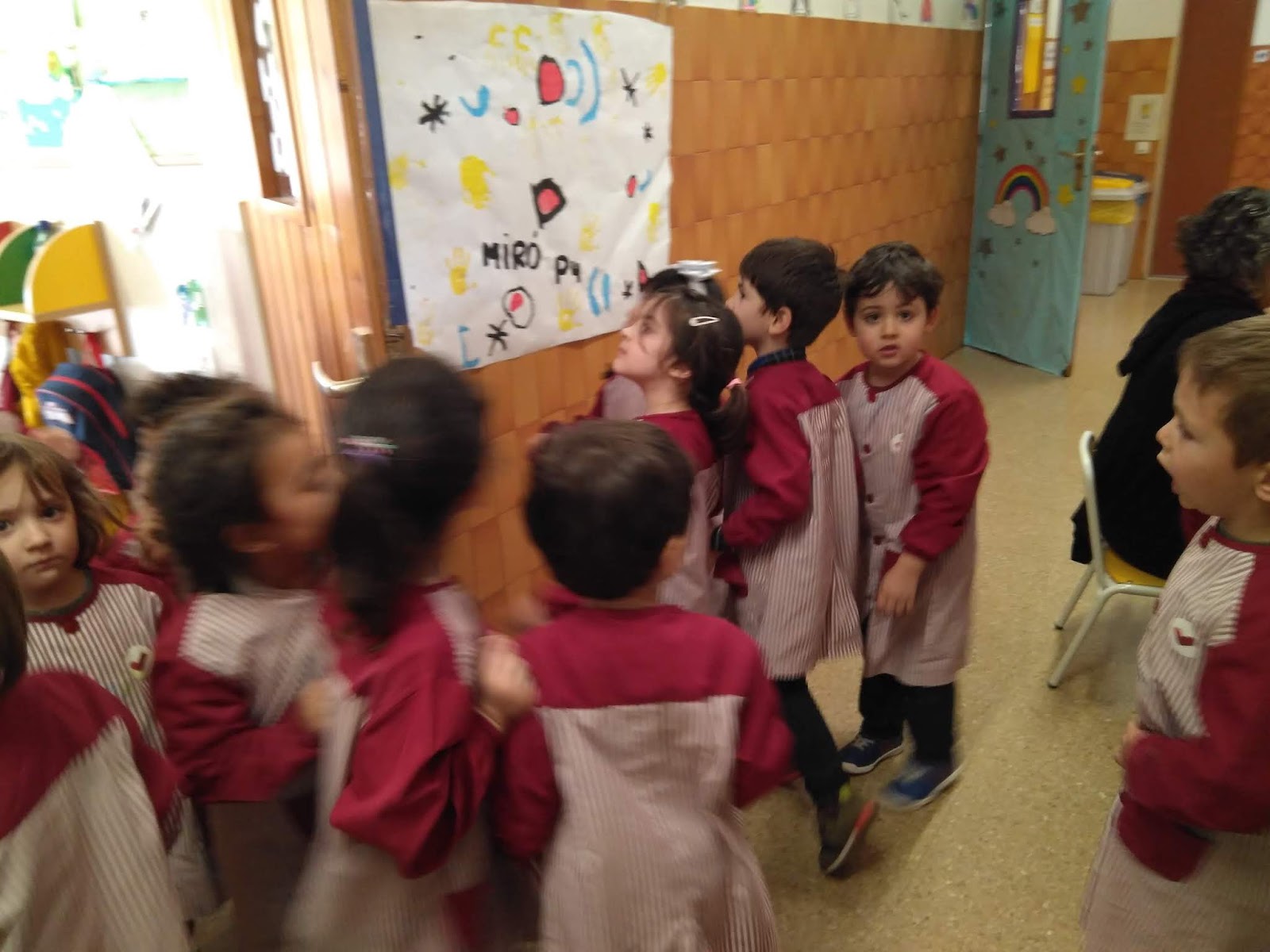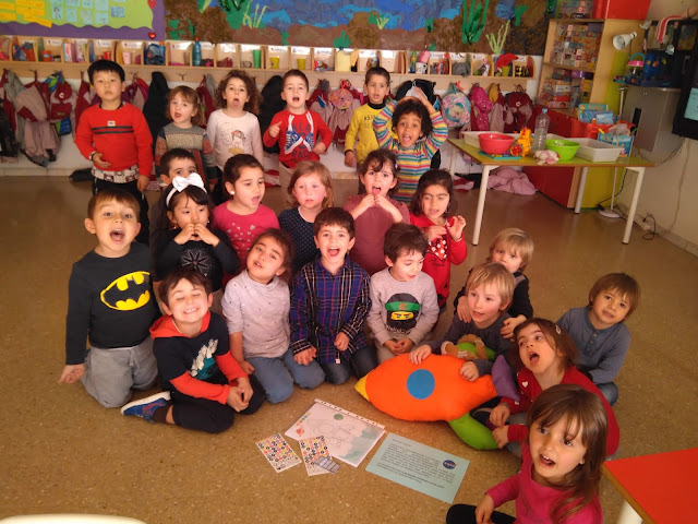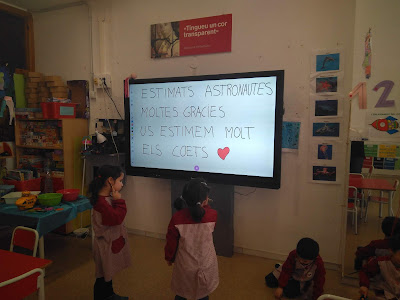 La setmana passada uns astronautes ens van portar una sorpresa a la classe dels Coets, però quan van arribar no hi érem a la classe… Així que ens van deixar una nota on ens deien que havíem de buscar una sorpresa per la classe, darrere d’un coet… sabeu on l’havien deixat?