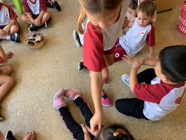 El Miquel Àngel, la Tiffany i la Luana també ens van portar fulles marrons que havien caigut dels arbres!
