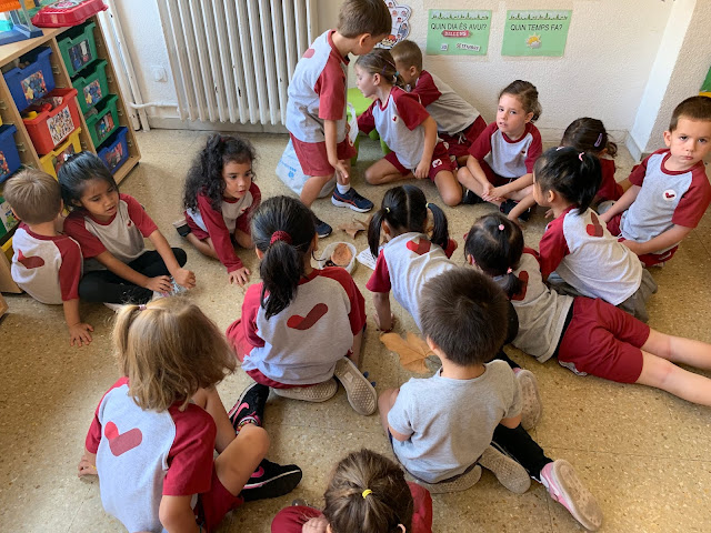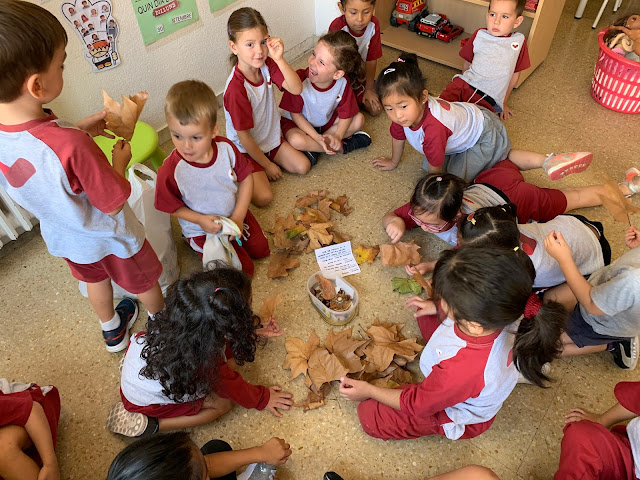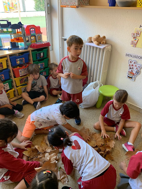 A la tardor, les fulles canvien de color i cauen dels arbres! Amb totes les fulles que ens havia portat el Roger vam poder observar el color marró que tenien i vam aprendre com passaven de color verd, a groc i després a marró!