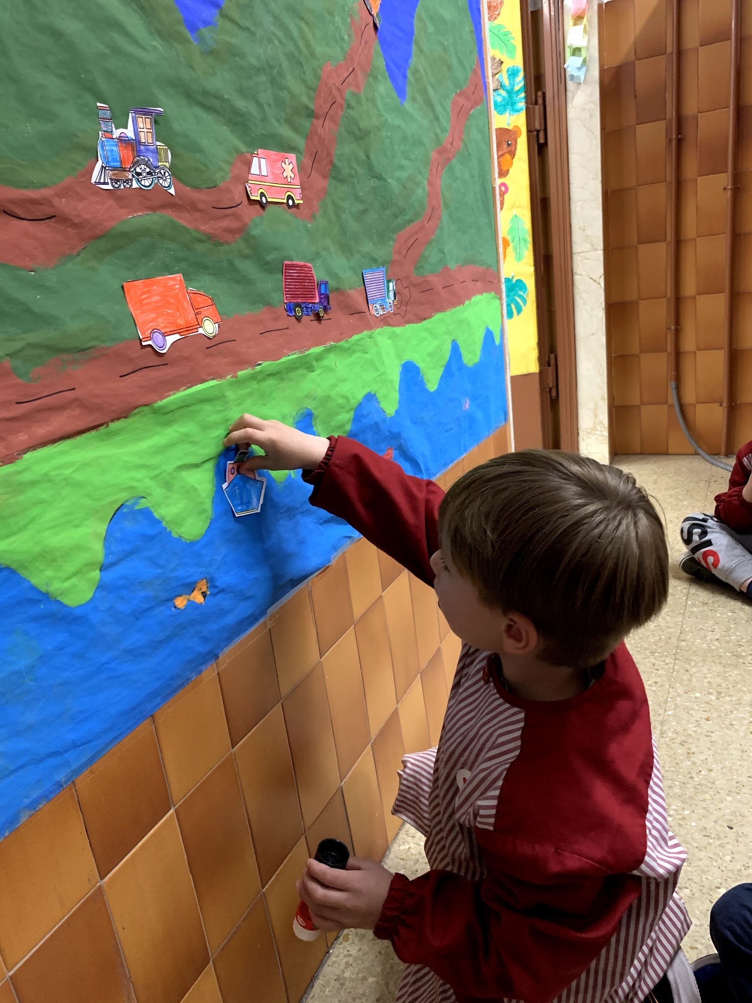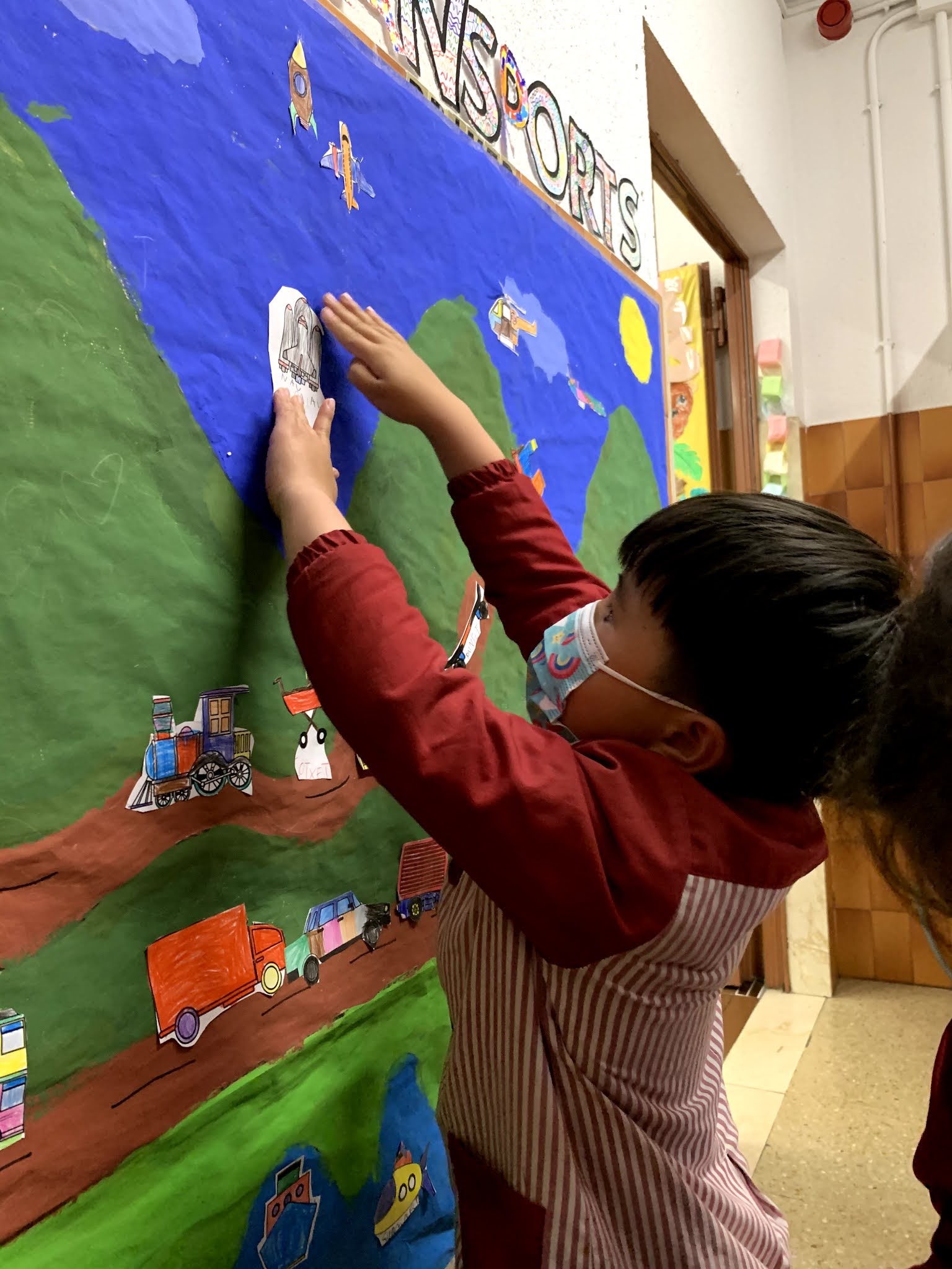 A més a més, hem creat un mural conjunt entre les dues classes que ens ha permès classificar els diferents transports segons si eren aeris, marítims o terrestres.