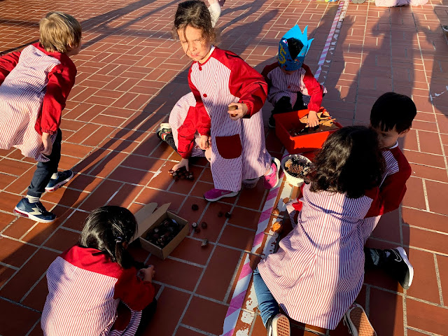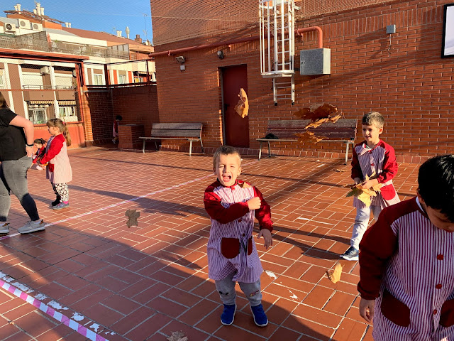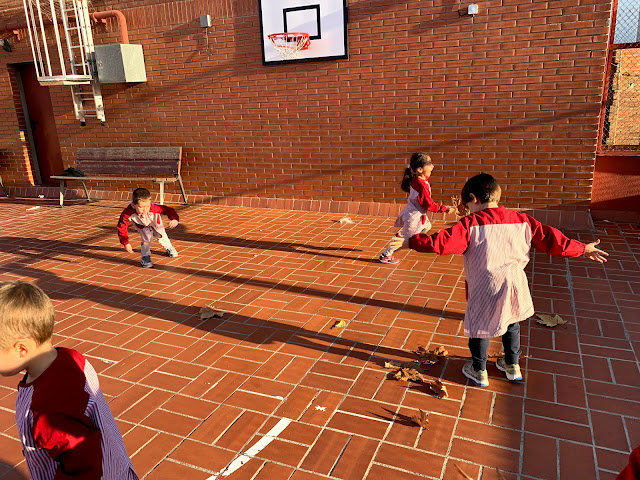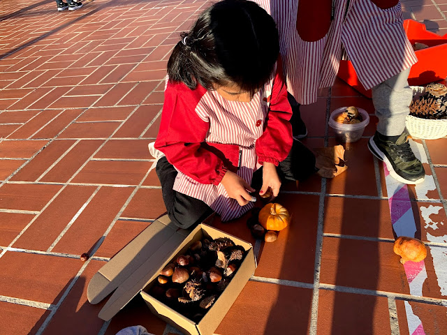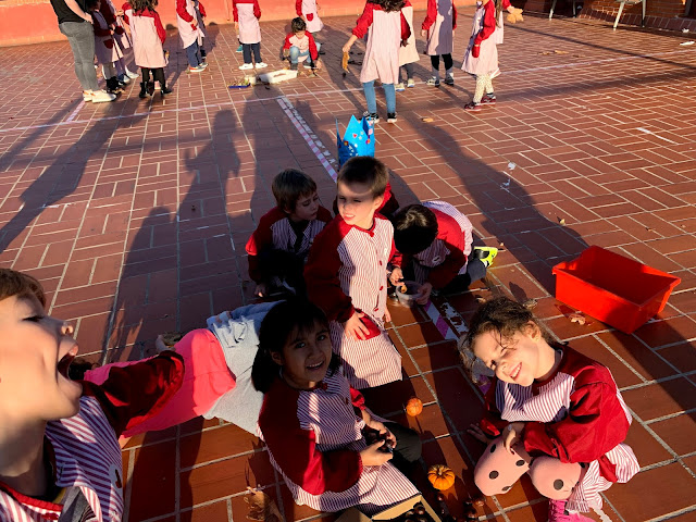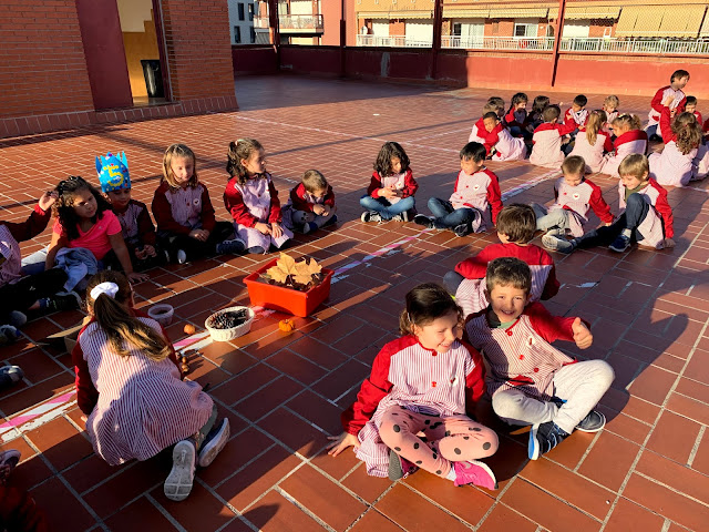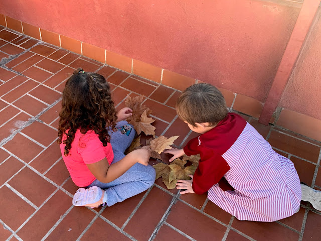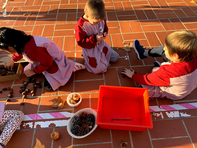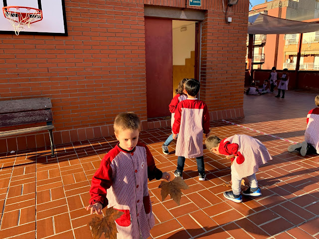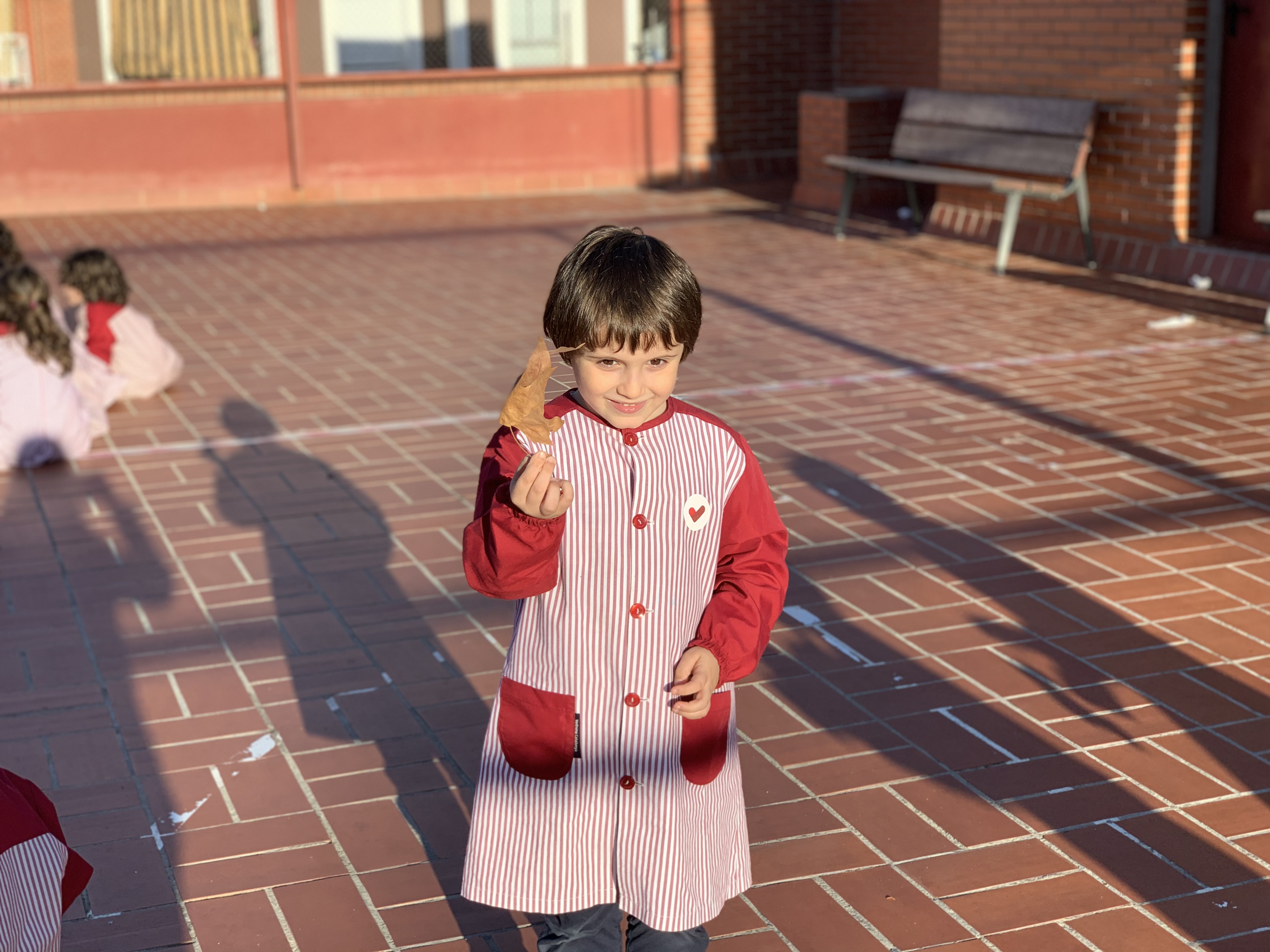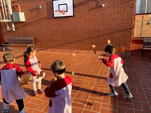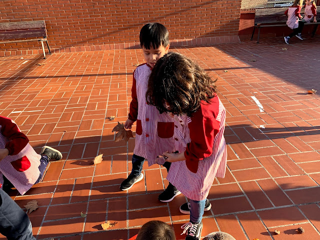 Els alumnes de les dues classes de P5 ens hem començat a acomiadar dels elements de la tardor que havíem anat recollint durant aquestes setmanes. Comença a fer fred i s’acosta un canvi d’estació que ens fa aprofitar uns últims dies experimentant amb les fulles, les pinyes, els aglans, les castanyes, els pellons…