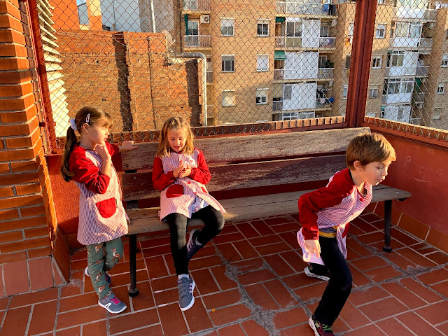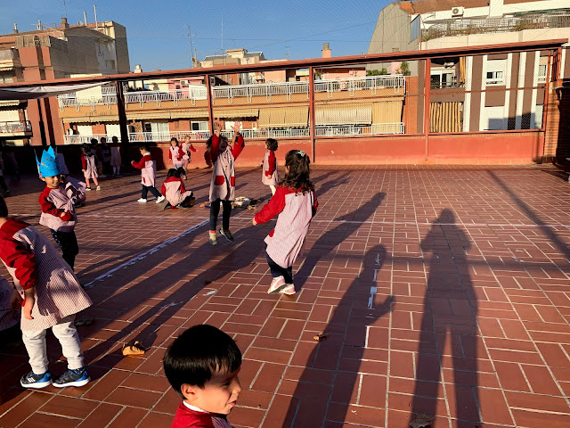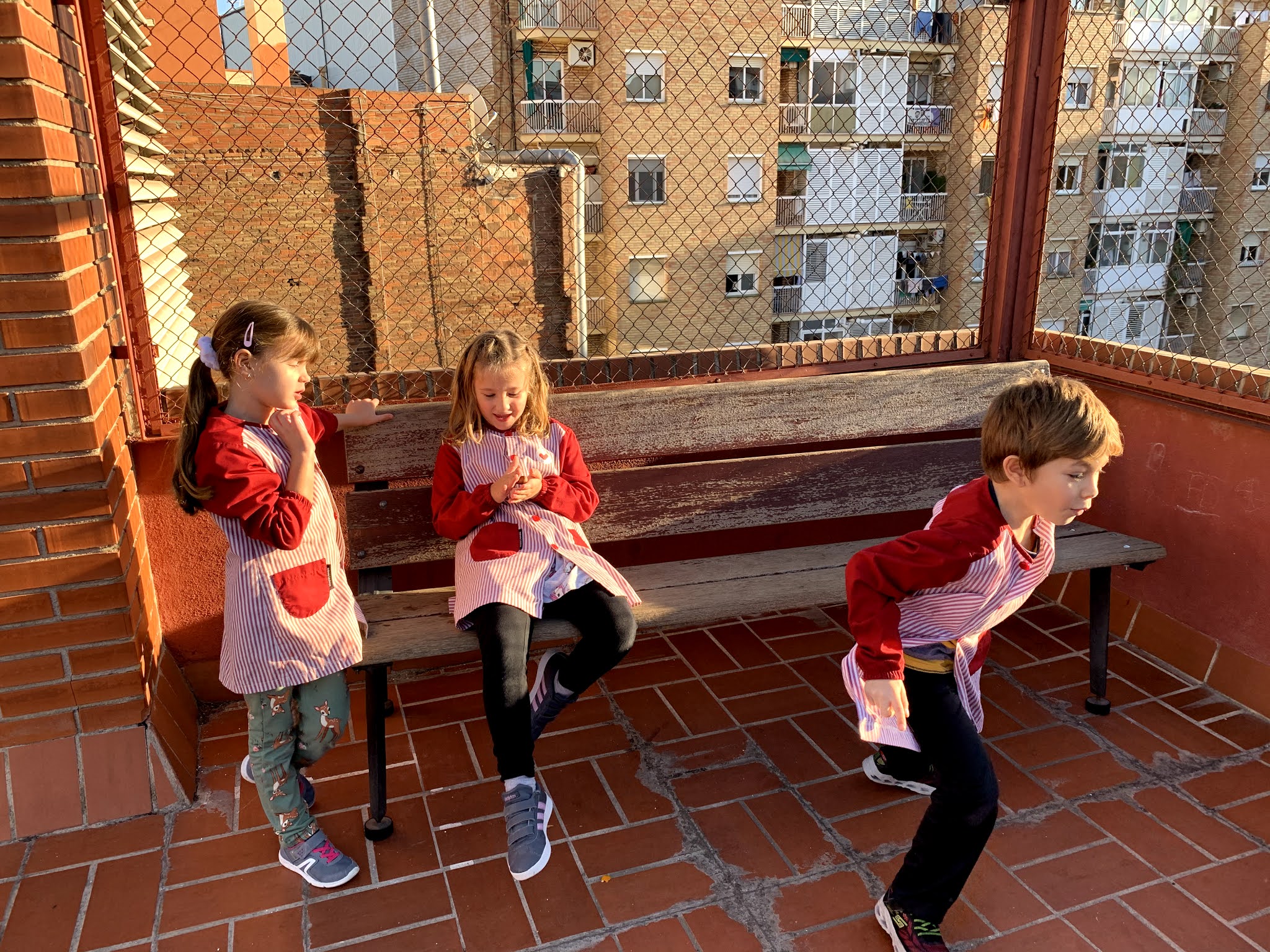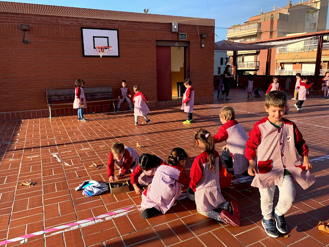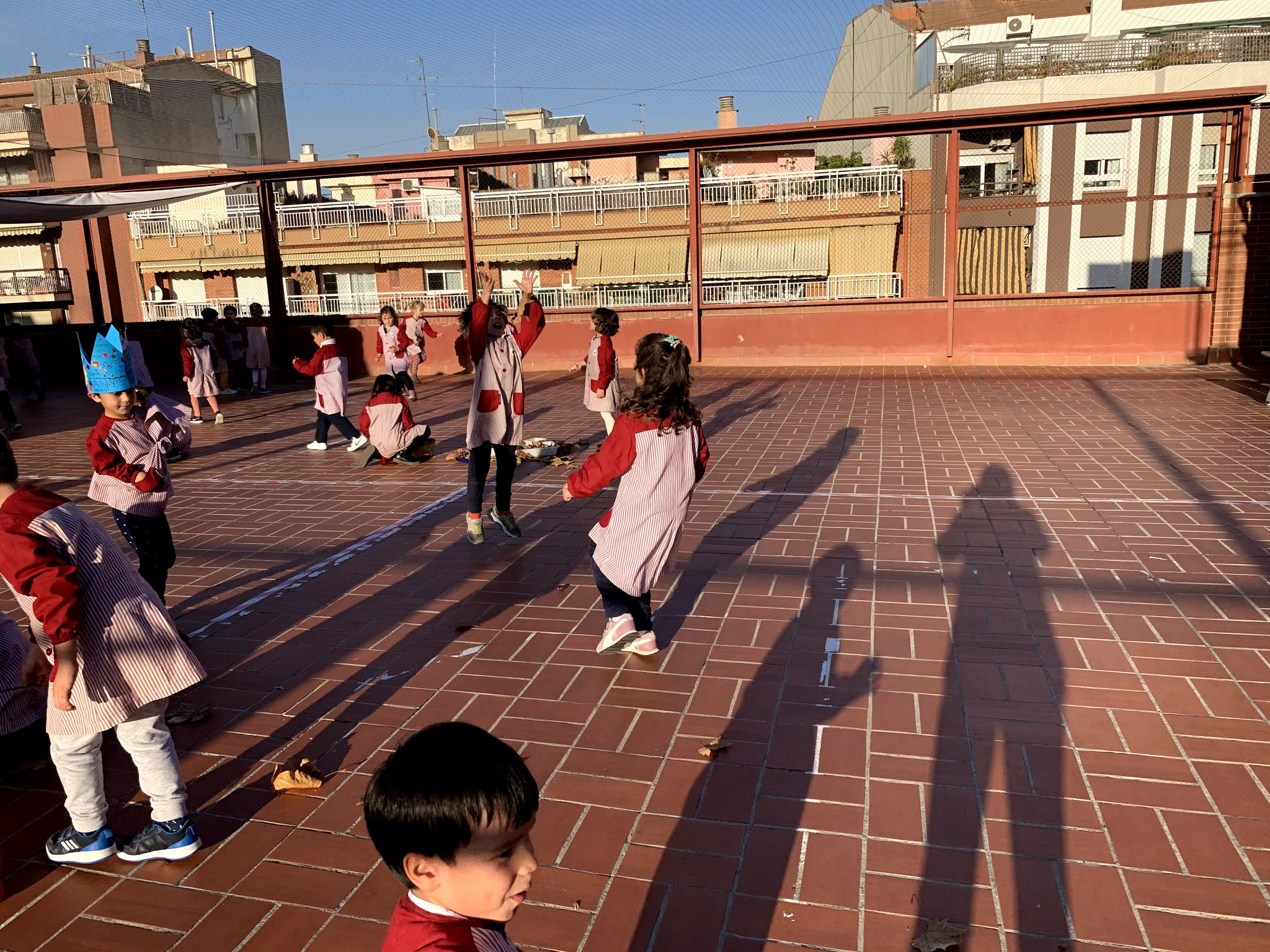 Ambdós grups vam pujar al terrat de l’escola amb tots els elements que encara estaven en bon estat i vam poder fer mandales, joc manipulatiu i moltes altres propostes que van sorgir durant aquesta estona.
