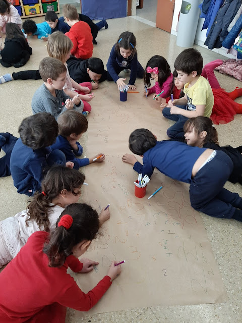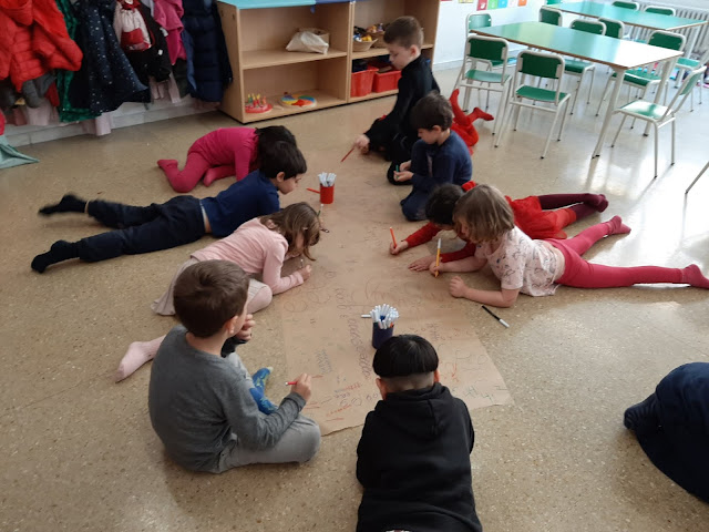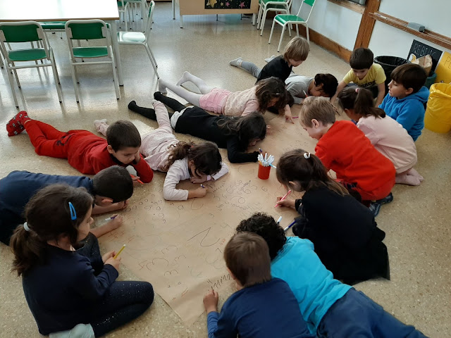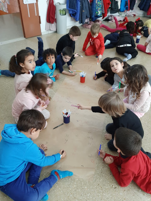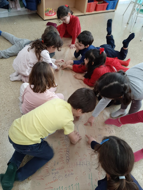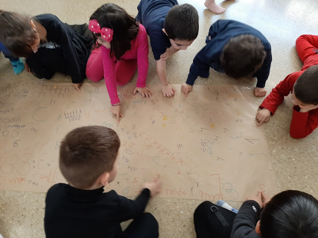 Avui la classe de les Estrelles i els Fantasmes hem fet un dictat de números molt divertit! Mentre ens movíem per la classe havien d’anar escrivint els números que anava indicant la mestra. D’aquesta manera hem repassat les grafies de l’u fins al set.