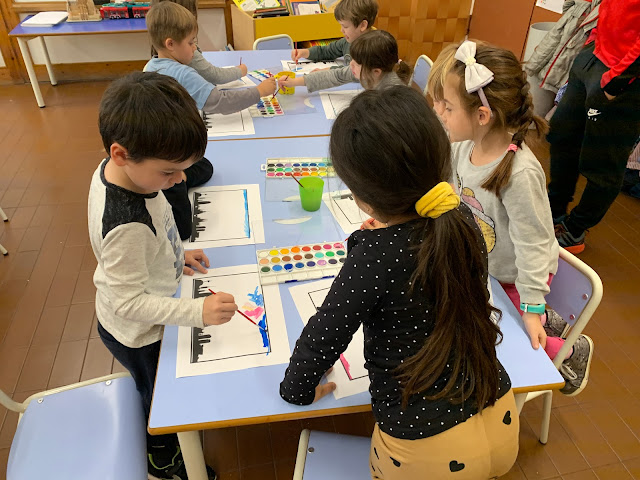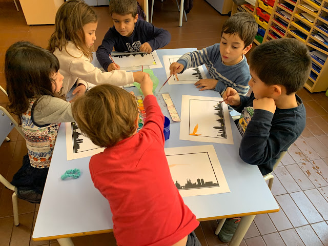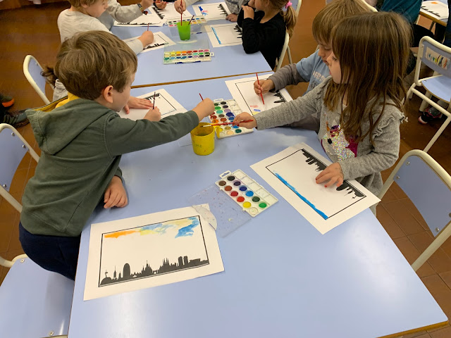 Ahir vam veure i reconèixer el skyline de Barcelona i vam pintar un cel de tarda amb aquarel·les. Han quedat preciosos. Aviat els podreu veure a les nostres aules.