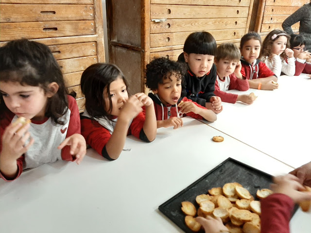 Famílies! Ahir vam anar al forn Elias i com ja sabeu ens vam convertir en forners i forneres. L’Anna, la fornera i propietària ens va ensenyar l’obrador, on vam poder descobrir com es fa el pa i com funciona tant per dins com per fora el forn. Aquest forn porta molts anys en marxa i vam poder conèixer una mica més sobre la seva història. Hem tingut molta sort de poder gaudir d’aquesta experiència amb els cinc sentits!