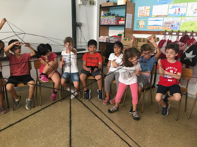 La primera dinàmica de grup que se’ls ha proposat ha estat la de la Teranyina. L’activitat consistia en que, asseguts en rotllana, ens haviem d’anar passant un capdell de llana mentre deiem una qualitat nostra que podiem aportar a la classe perquè el dia a dia vagi bé i hi hagi un bon ambient.