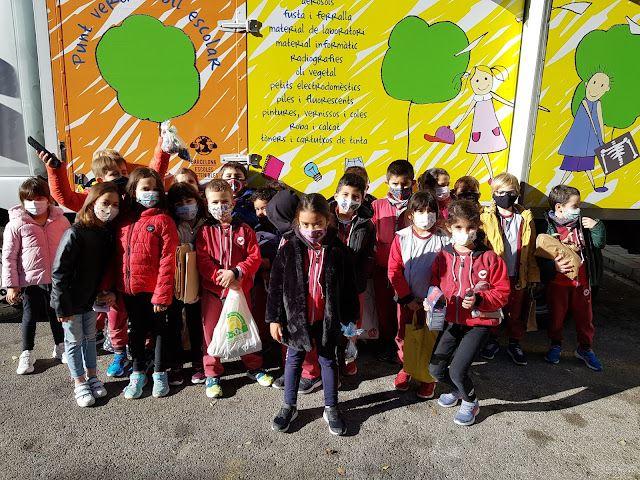 Per fi ha arribat el dia que el PVME ha visitat l’escola. Tots els alumnes estaven avisats i la gran majoria han portat residus que tenien per casa. S’ha treballat la importància de reciclar correctament les deixalles i tots han pogut observar la bona organització del camió per a poder classificar com cal.