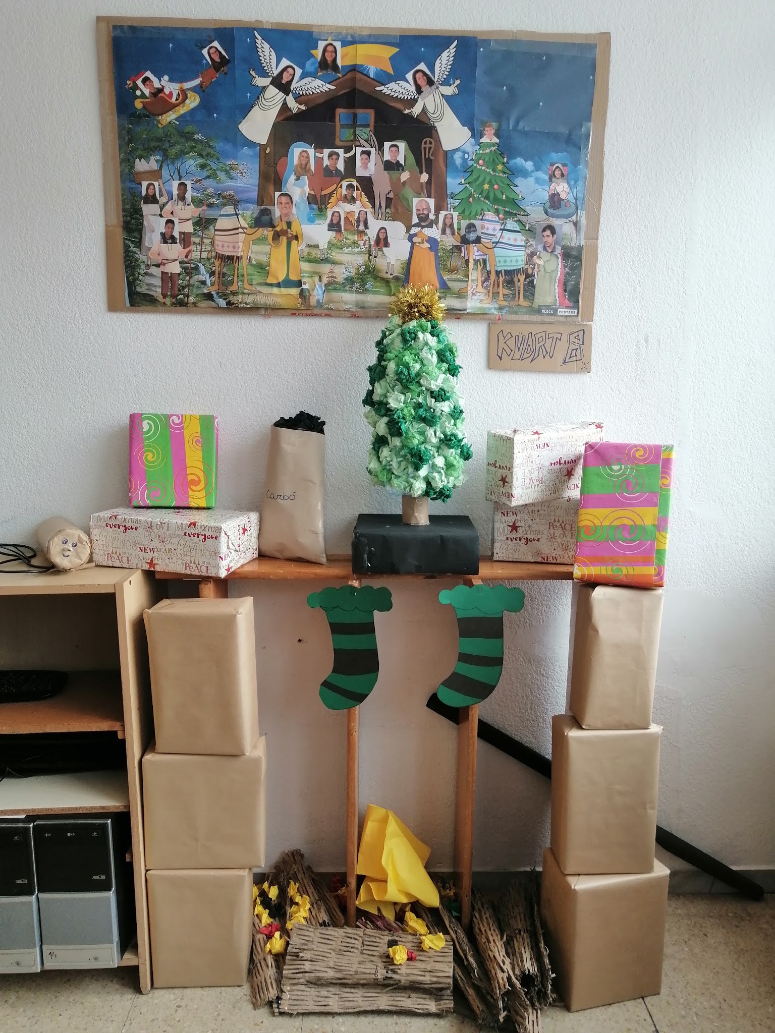 Cada curs es va organitzar per poder decorar les seves dues classes. Uns ho van planificar amb moltíssima empenta i il·lusió. D’altres, ho van improvisar més a última hora. I encara va haver qui va anar un pèl més enllà, i va aprofitar per reutilitzar material que ronda per totes les cases, com ampolles de plàstic, capses de sabates, Paper d’embalar reutilitzat, per fer pessebres, llars de foc, motius de decoració nadalenca com garlandes per penjar a les finestres….