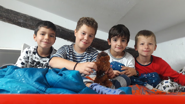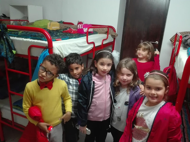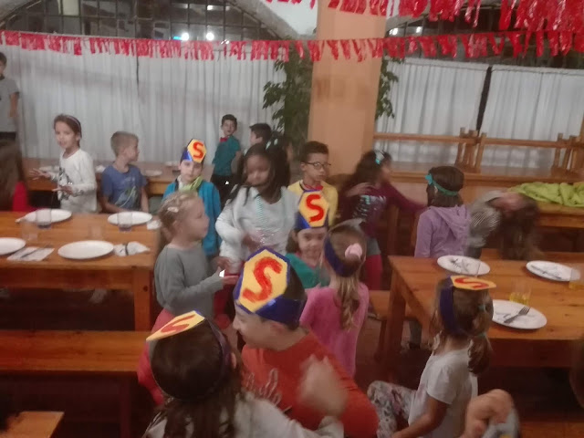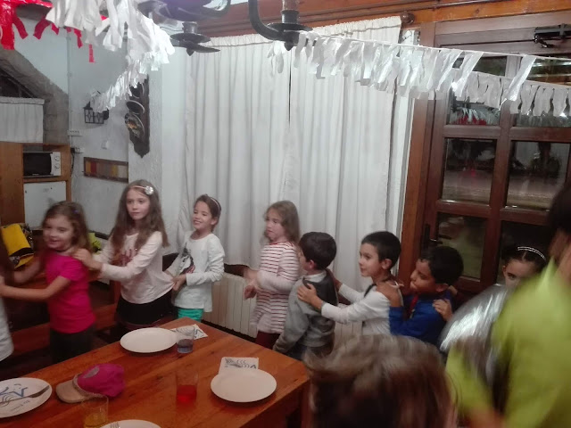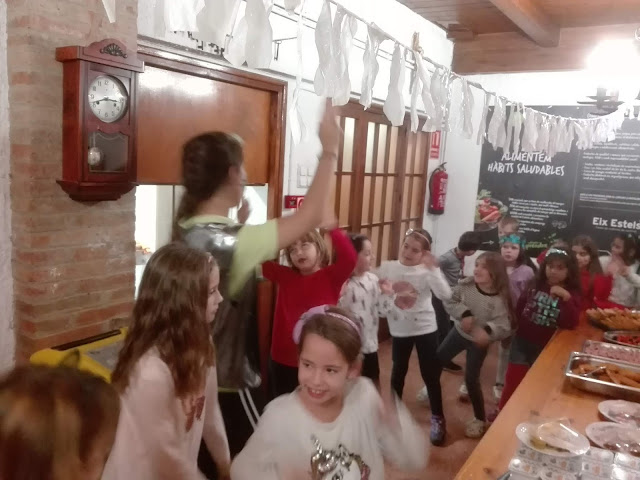 Després de fer d’aventurers del bosc, ens preparem pel Sopar de Gala. Després, de pentinar-nos i posar-nos molt guapos hem jugat una estona a jocs de taula i, a continuació, ha començat la festa. Hem cantat i ballat, hem begut aigua de colors i, fins i tot, hem anat a buscar unes pocions per tal d’ajudar a la fada Natúria.
