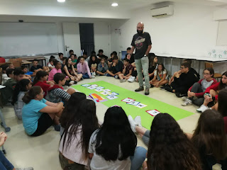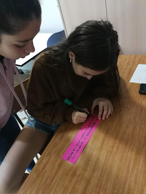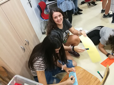 Quan ells han arribat a la sala polivalent de la què disposàvem per poder reunir-nos, s’han trobat amb un pòster on hi podien llegir “El meu compromís”. Acte seguit, un professor els hi ha explicat que el què estaven a punt de fer, era una dinàmica només apte per a valents i valentes. Perquè havien de pensar un compromís pel que haurien de lluitar i fer-lo possible al llarg d’aquest curs escolar.