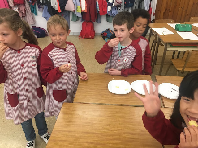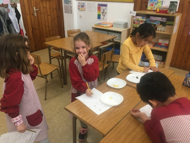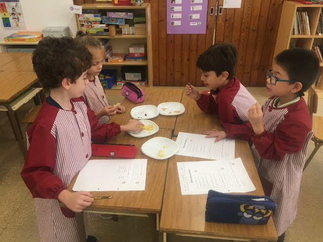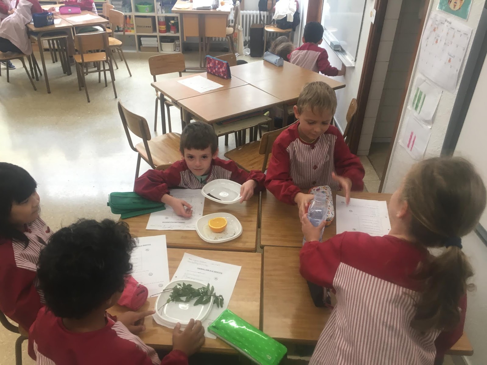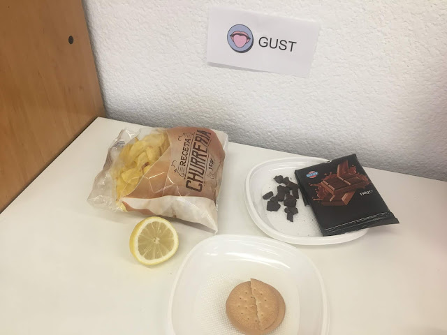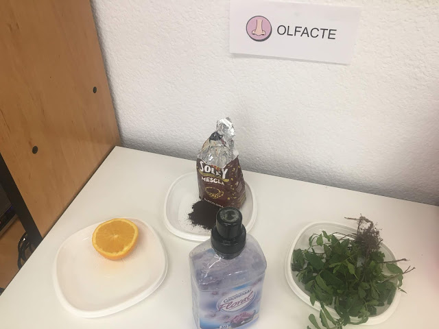 Aquests dies estem treballant els cinc sentits. Així doncs, la setmana passada, per tal d’aprofundir-los, vam voler preparar diferents espais a l’aula, un per cada sentit. En cadascun d’ells, els nens i nenes de primer van haver de resoldre en petit grup les preguntes que se’ls proposava. S’ho van passar la mar de bé! Mireu com oloren, escolten, miren, toquen i tasten!