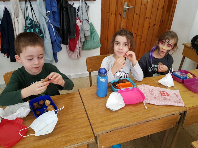 Quina tarda més completa, la del 30 d’octubre! A l’escola hi va haver de tot. Vam fer una manualitat de la castanyera, vam fer un berenar tradicional amb la visita sorpresa de la CASTANYERA i per últim vam cantar i ballar amb la música de les cançons: “La castanyera rokera i La rumba de les castanyes”.