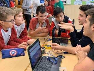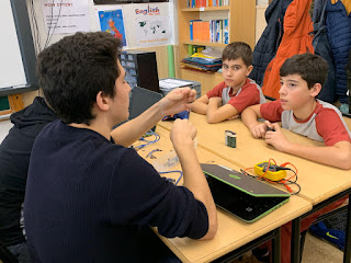 El passat dimecres 5 de febrer, els alumnes de sisè de primària van viure “un matí a l’ESO”, per anar descobrint què els espera el proper curs i preparant-se per la transició entre etapes. El matí va començar amb una breu xerrada a càrrec de la directora de Secundària amb tots els alumnes de sisè i va continuar amb diversos tallers per experimentar què fan els nois i noies de Secundària a l’escola. Amb el suport del professorat de l’etapa i de l’alumnes voluntaris de 4t d’ESO, van fer pràctiques d’alemany, de tecnologia i d’informàtica i amb els voluntaris de 2n d’ESO van fer taller de robòtica amb els robots Mindstorms. Per finalitzar, van realitzar una activitat al laboratori i van fer educació física al poliesportiu de Sagrada Família.