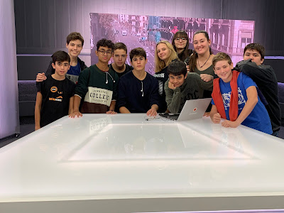 Avui els alumnes de 3r d’ESO A hem anat a fer una visita als estudis de la televisió pública de Barcelona, Betevé. Un cop allà ens han explicat com funciona la televisió i la ràdio, ens han ensenyat la quantitat de gent que treballa i com n’és d’important el treball en equip. Hem pogut visitar els platós de televisió tant de diferents programes com els dels informatius. També hem pogut visitar l’estudi de ràdio i fins i tot hem viscut com han hagut de tallar la programació per fer un “breaking news” amb informació en directe. Ens han explicat que aquesta setmana està sent molt intensa a nivell periodístic amb tots els esdeveniments polítics i socials que estan passant a la nostra ciutat.